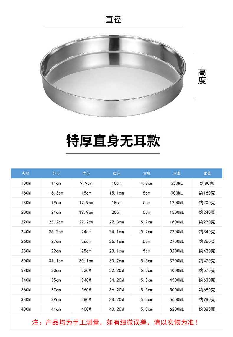 스테인레스 스틸 콜드 스킨 플레이트 콜드 파이 루오 플랫 바닥 디스크 케이크 플레이트 요리 가정용 찐 쌀 그릇 파우더 플레이트 찐 쌀 플레이트