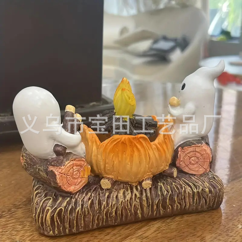 국경 간 새로운 할로윈 유령 시뮬레이션 화재 동상 디자인 장식 수지 공예 홈 장식스토어 가기