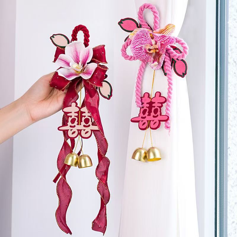 문 손잡이 웨딩 장식 웨딩 룸 거실 커튼 펜던트 커튼 스트랩 꽃 번들 웨딩 배열스토어 가기