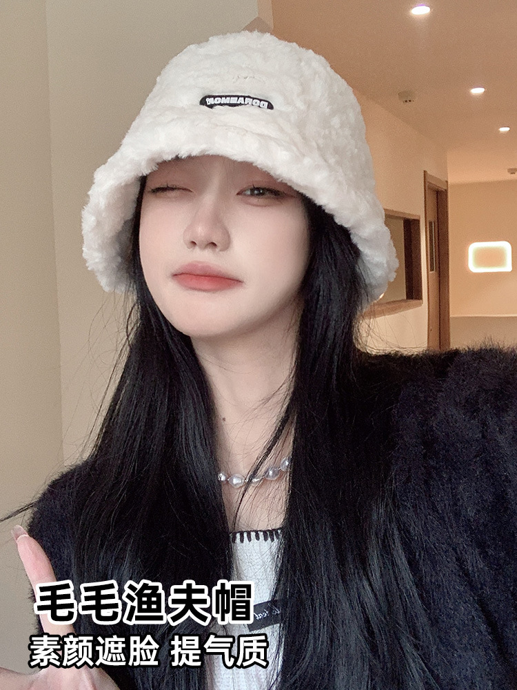 가을과 겨울 새로운 한국식 올매치 일반 메이크업 아티팩트 봉제 어부 모자 어린이 얼굴 작은 기모 따뜻한 양동이 분지 모자스토어 가기