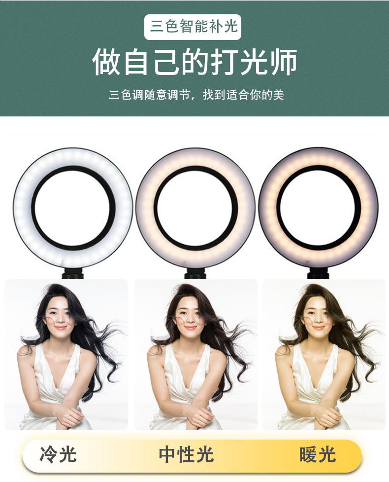 데스크톱 링 LED 충전 빛 휴대 전화 클립 3 색 온라인 빨간색 라이브 조명 뷰티 링 채우기 빛