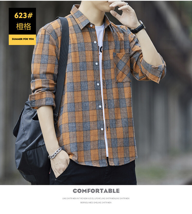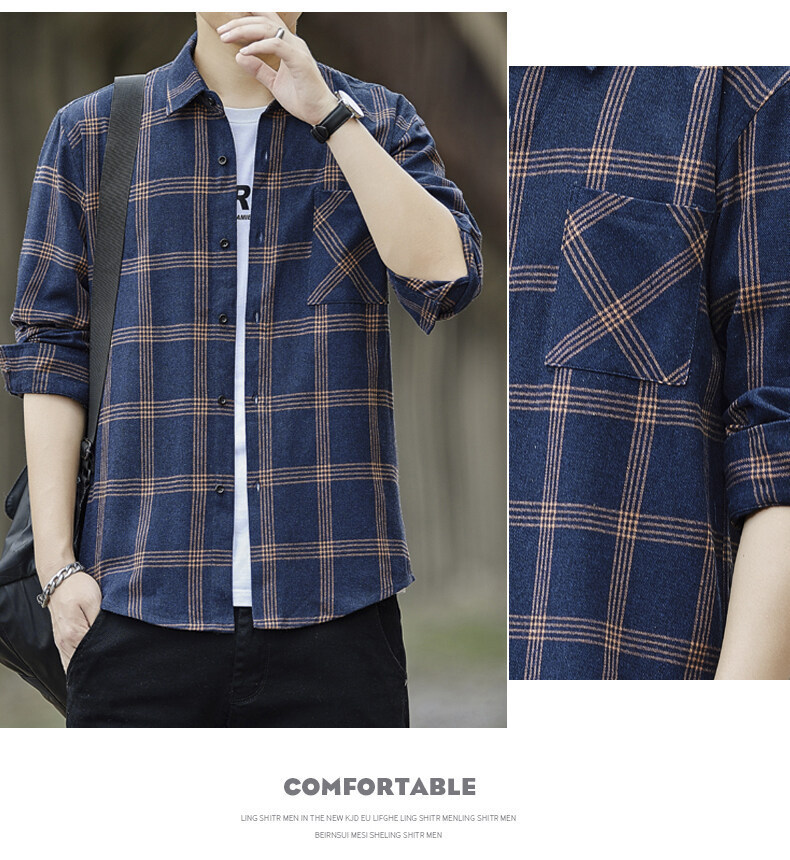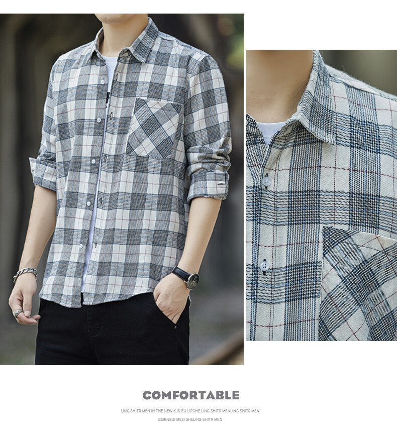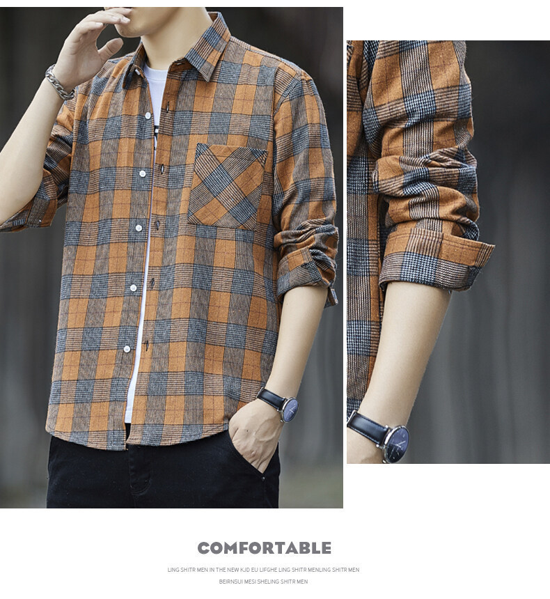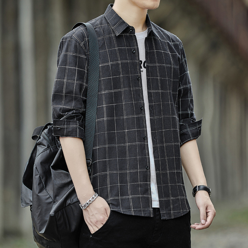 남성용 긴팔 셔츠, 봄, 가을 피부 친화적인 체크 무늬 탑, 트렌디한 한국식 캐주얼 다재다능한 핸섬 셔츠 재킷 남성복