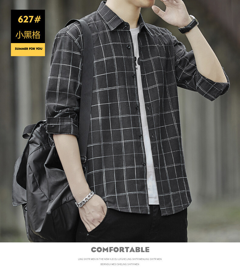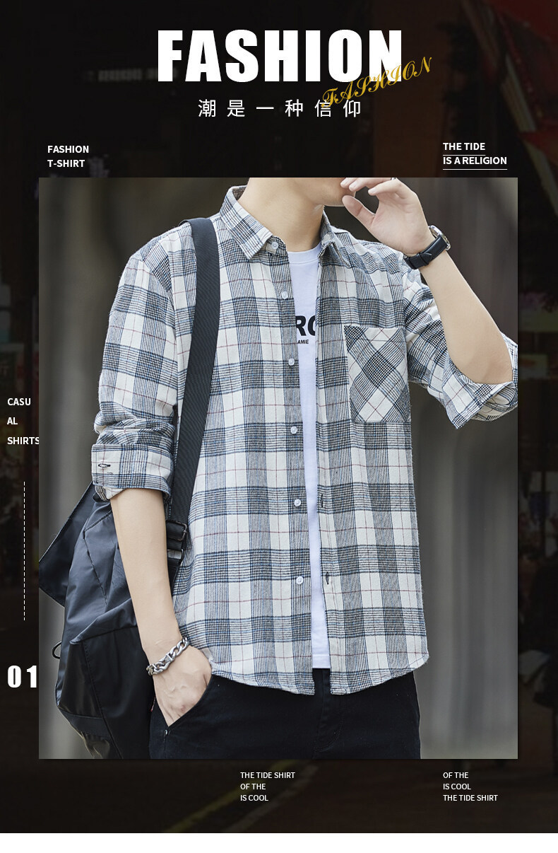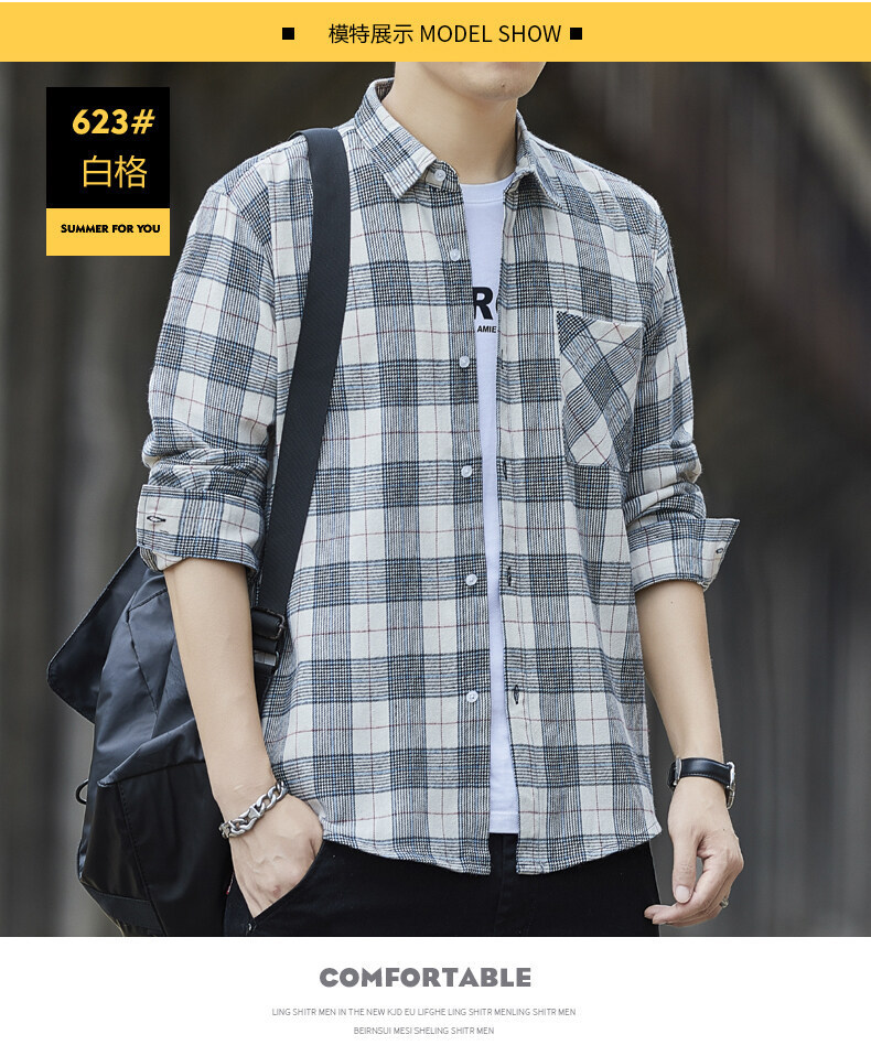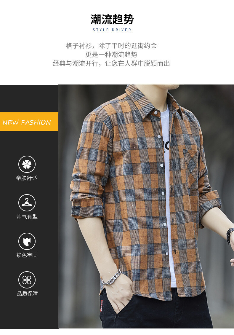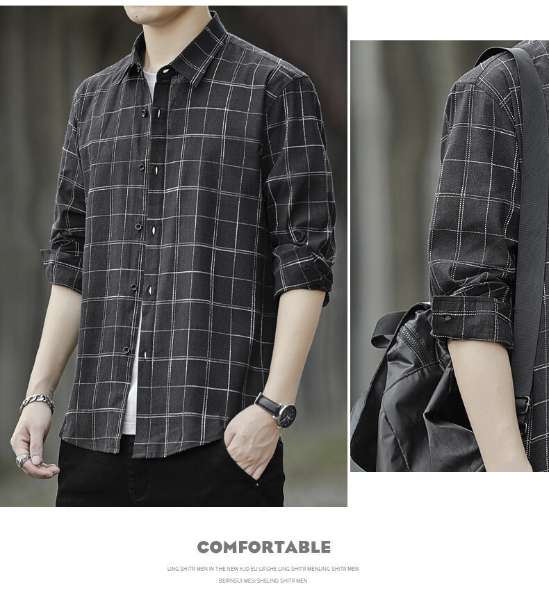 남성용 긴팔 셔츠, 봄, 가을 피부 친화적인 체크 무늬 탑, 트렌디한 한국식 캐주얼 다재다능한 핸섬 셔츠 재킷 남성복