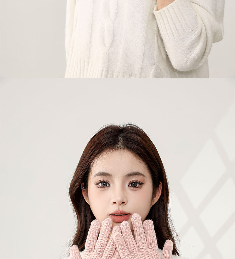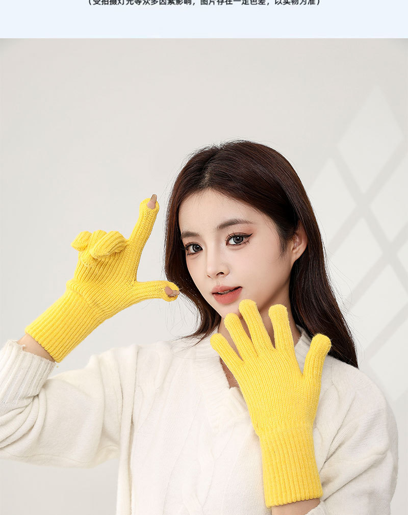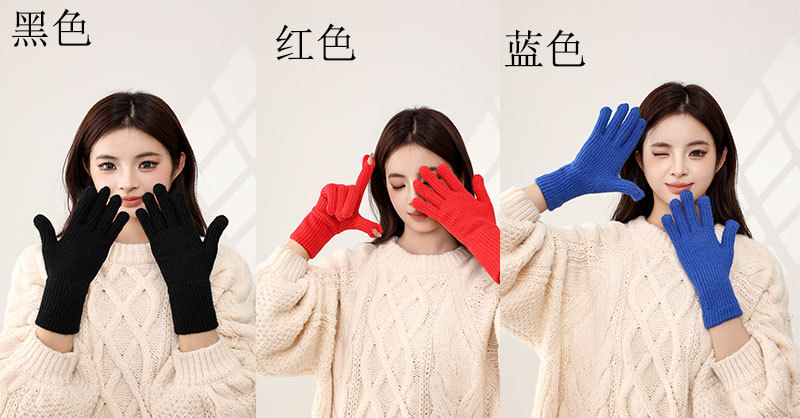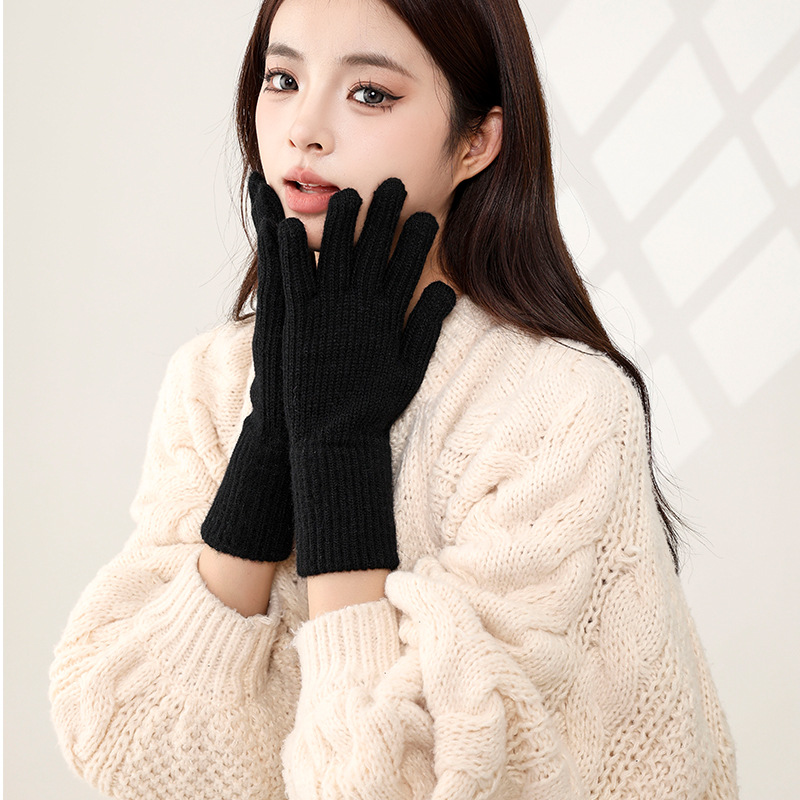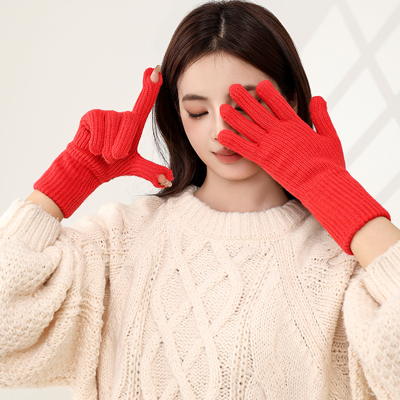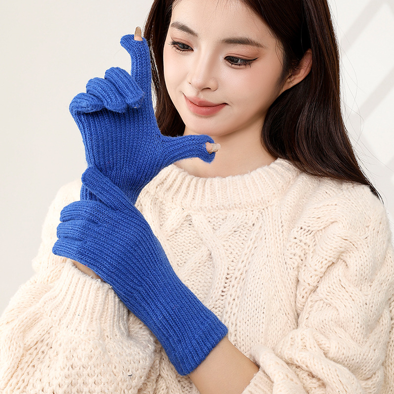 한국식 핑거 누설 장갑 여성 인터넷 기념 홀 터치 스크린 솔리드 컬러 울 장갑 니트 따뜻한 방한 손가락 길이