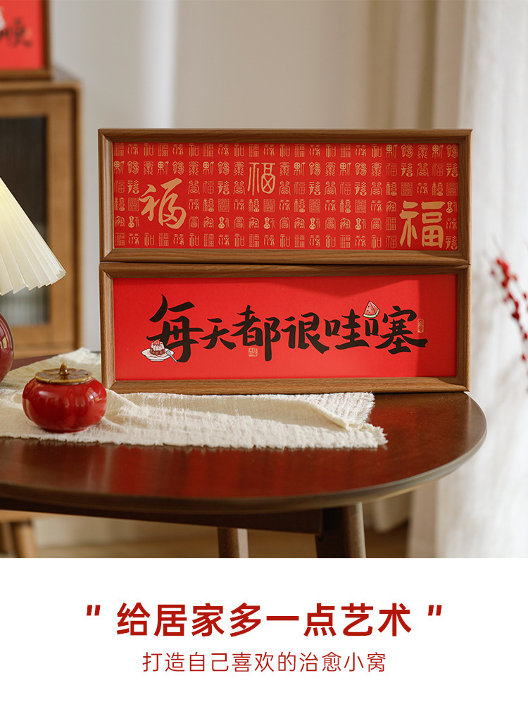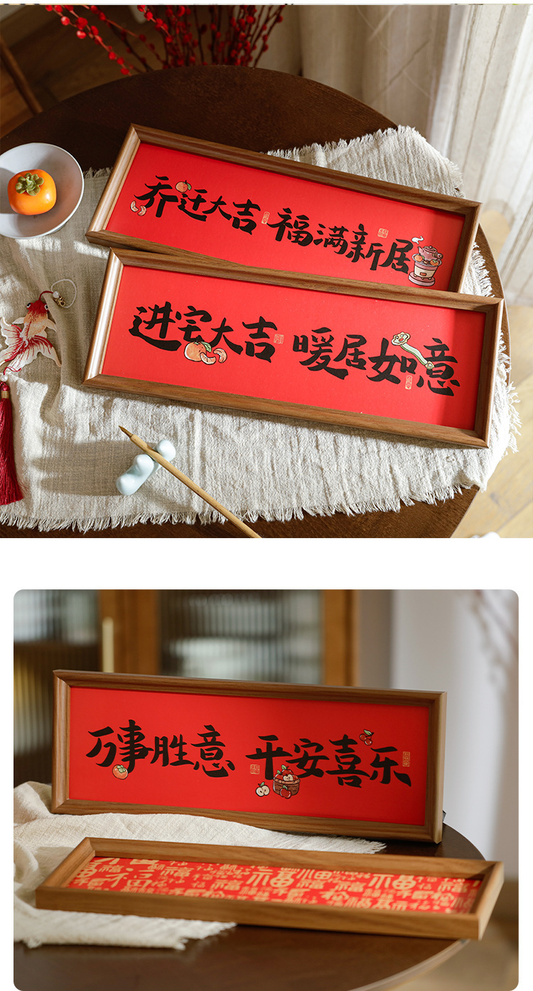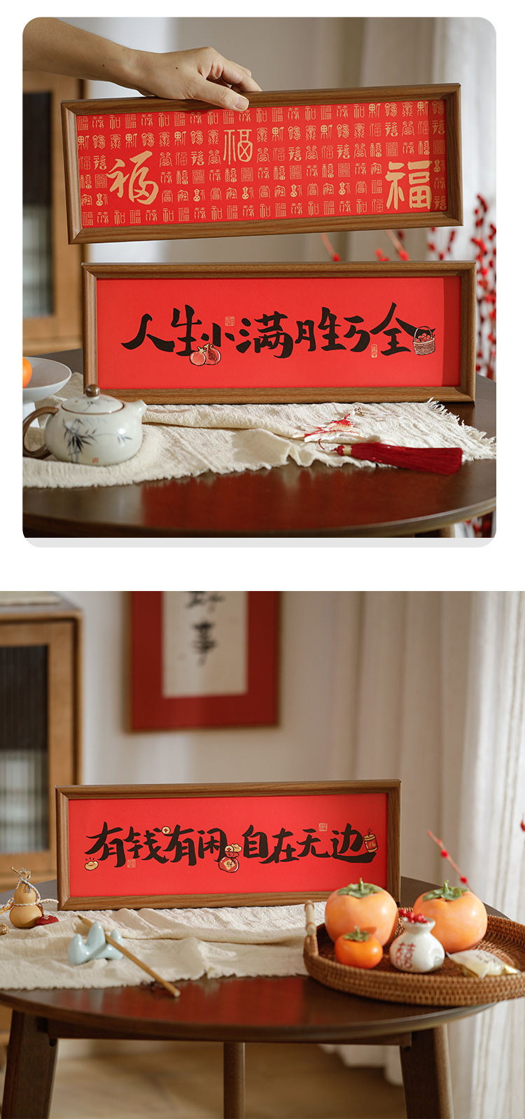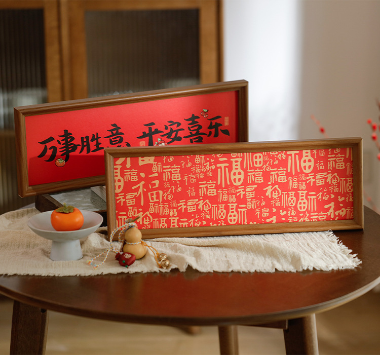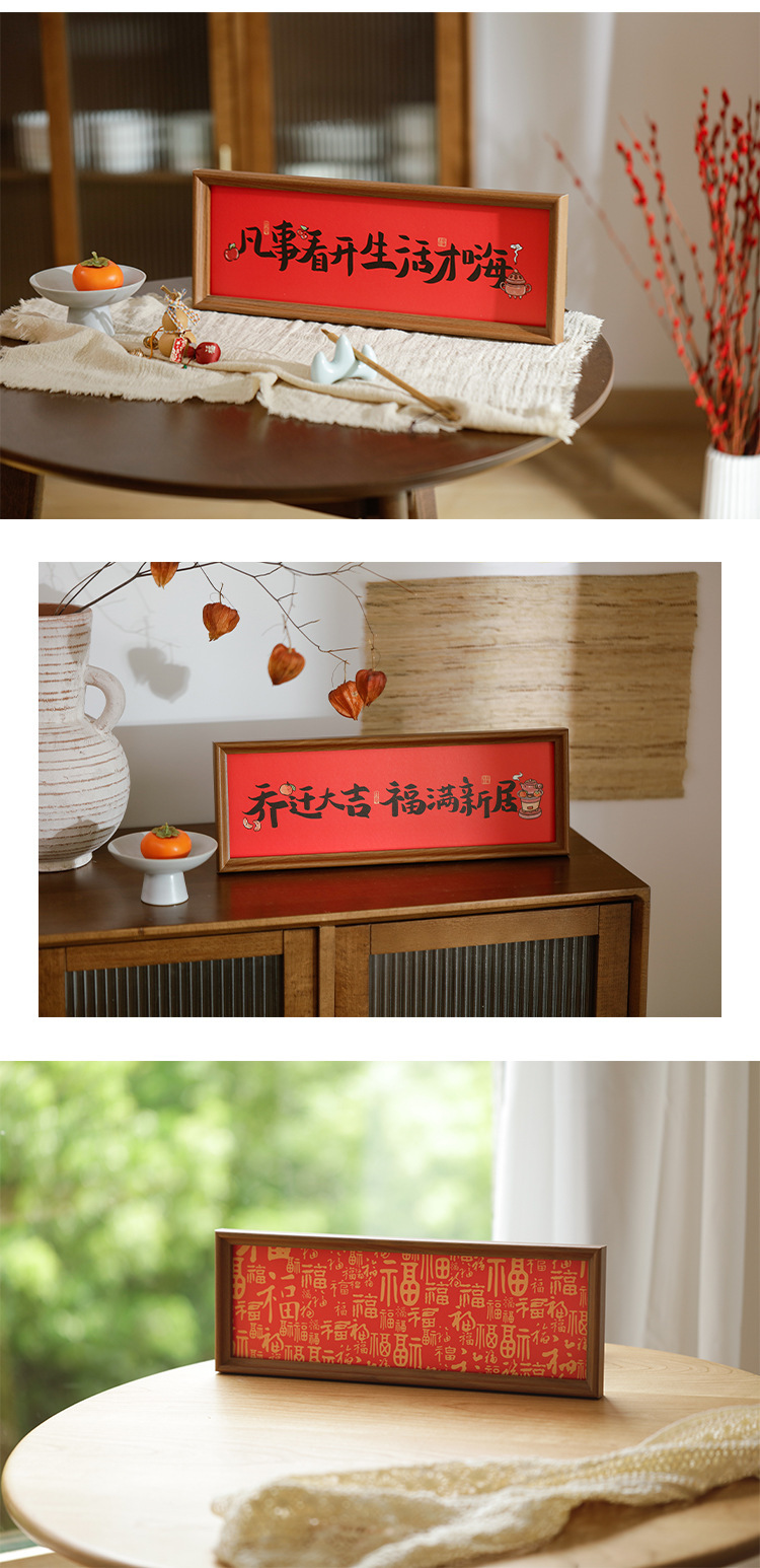 붉은 축제 서예 축복 텍스트 프레임 세트 테이블 결혼식 집들이 새로운 가정 장식 데스크탑 장식품 집스토어 가기