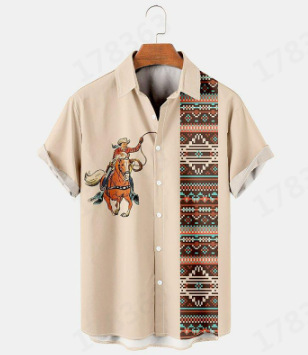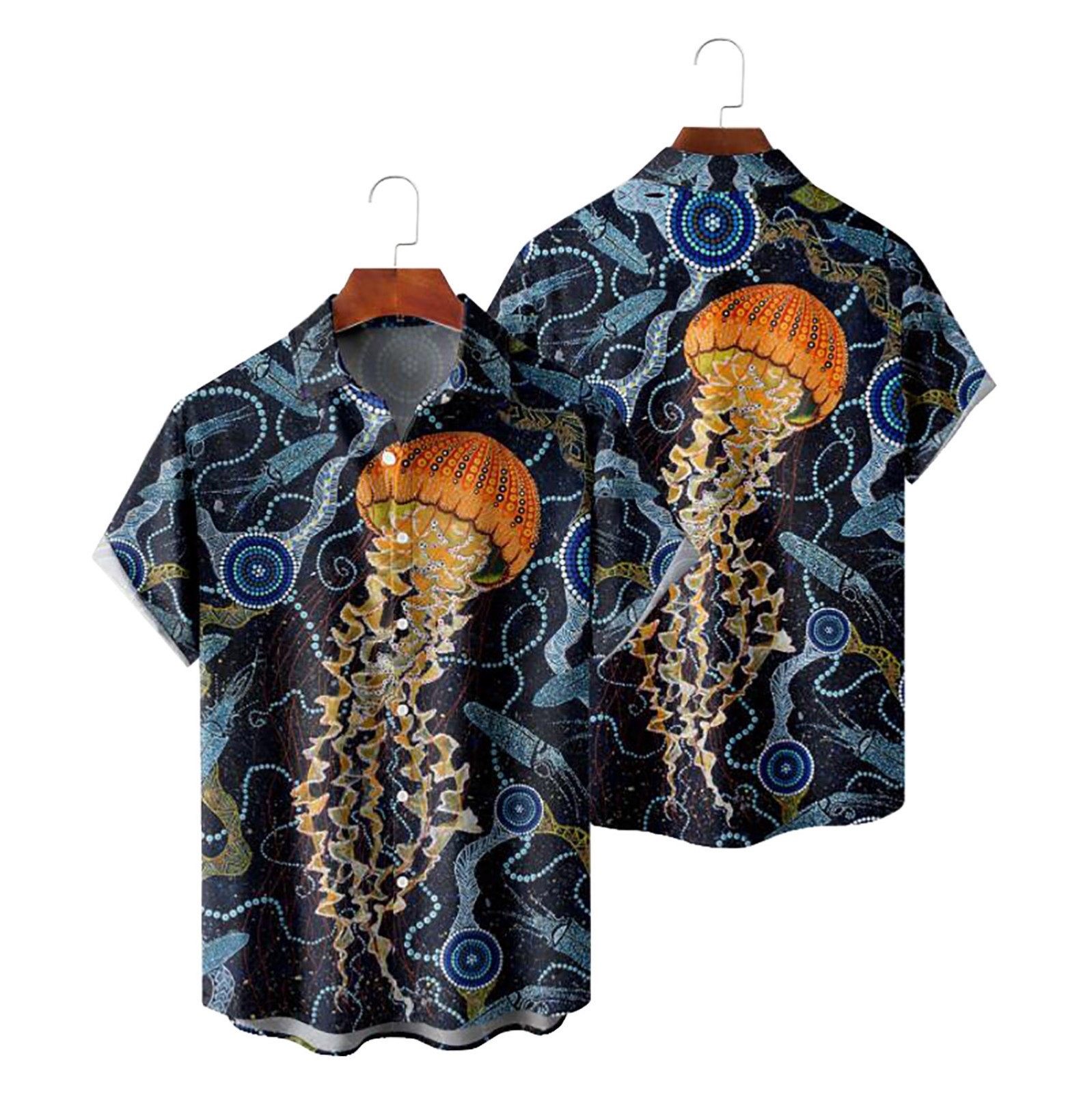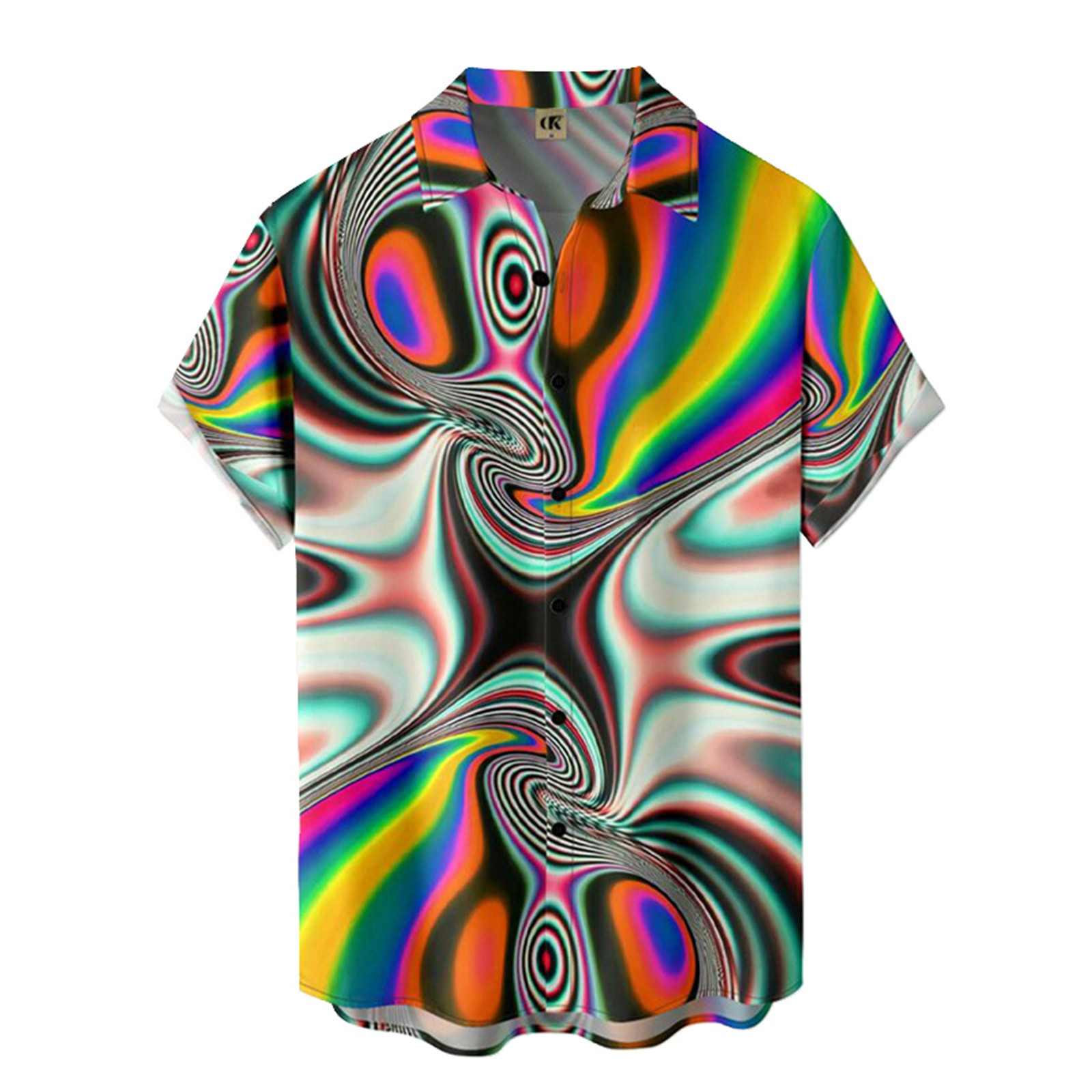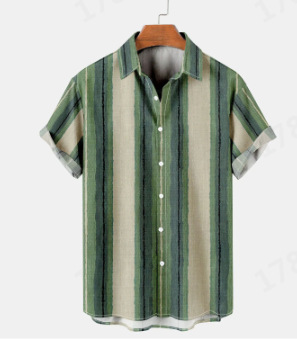 국경 간 대외 무역 여름 새로운 대형 남성 캐주얼 3D 디지털 인쇄 반팔 셔츠 하와이 남성 셔츠