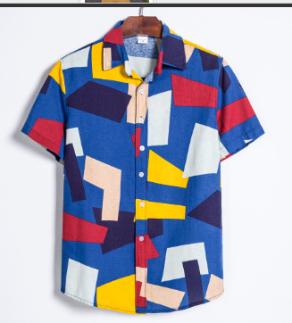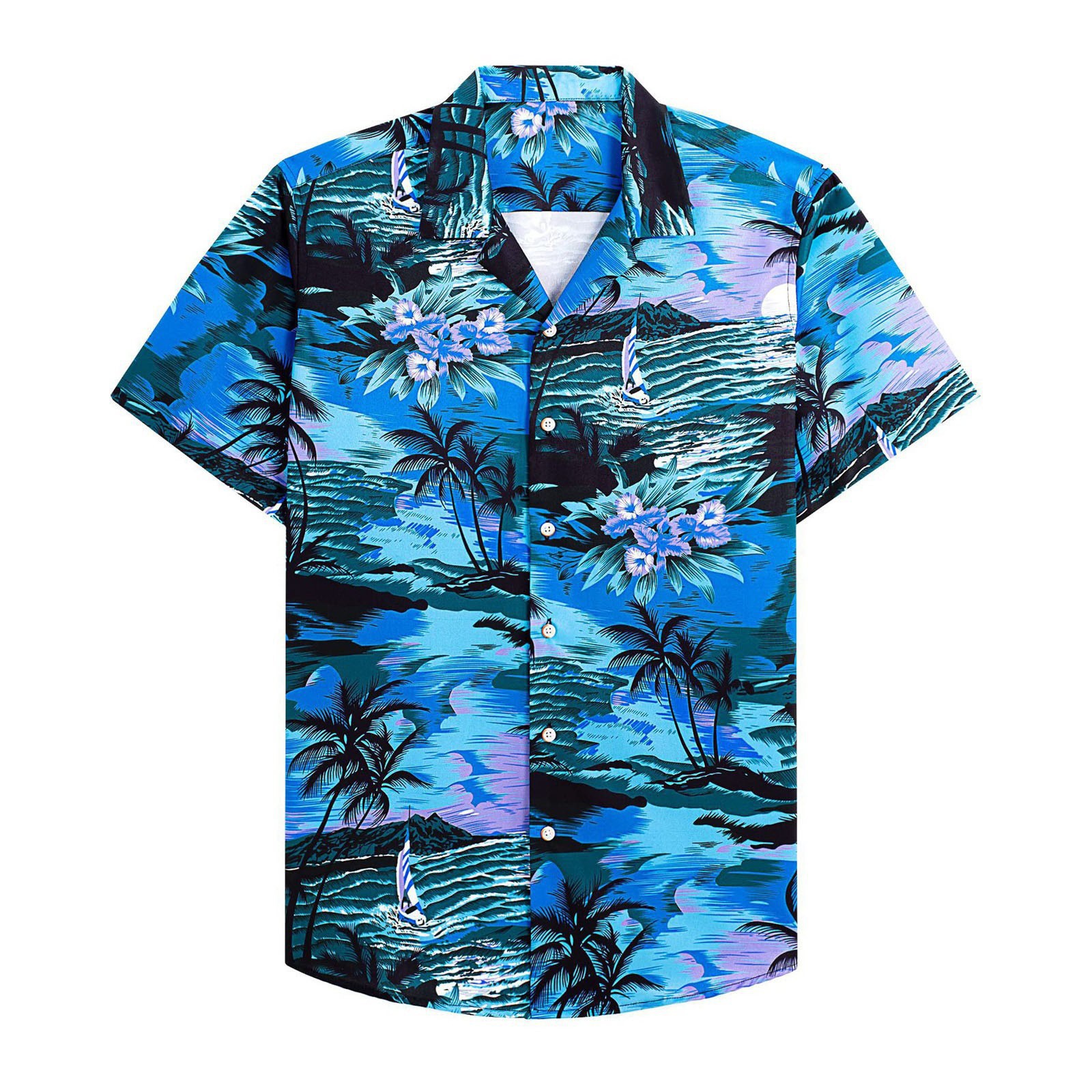 국경 간 대외 무역 여름 새로운 대형 남성 캐주얼 3D 디지털 인쇄 반팔 셔츠 하와이 남성 셔츠스토어 가기