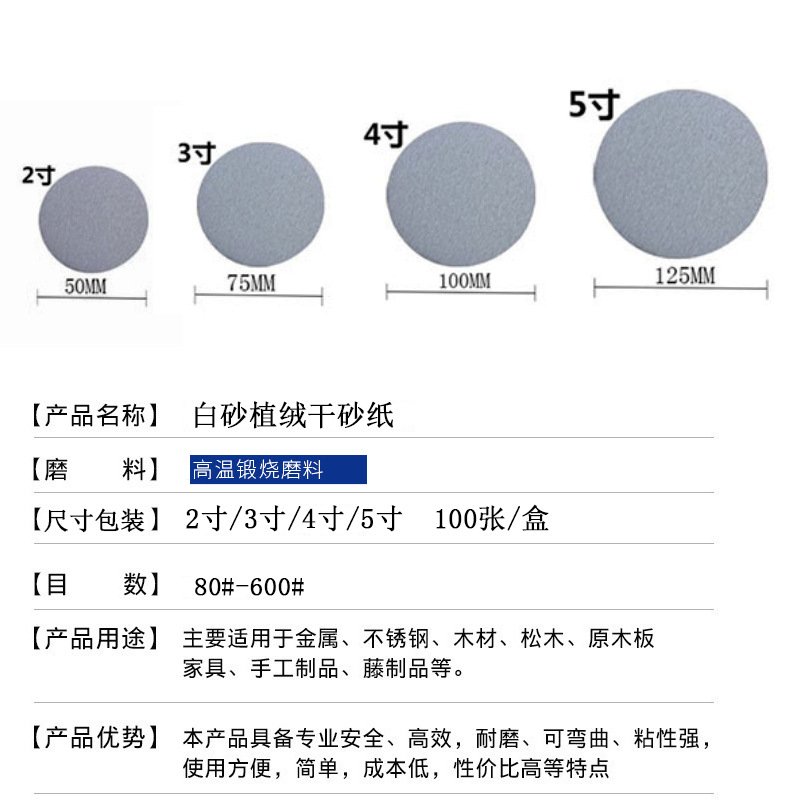 植绒砂纸5寸圆盘砂纸5寸白砂纸 圆盘型拉绒片125mm植绒片 白沙干磨砂纸木工打磨批发5寸6孔植绒砂纸片木材金属油漆打磨沙纸 125mm圆盘背绒白砂金阳植绒打磨砂纸2寸3寸4寸5寸圆盘抛光干磨背绒磨砂纸自粘白砂纸