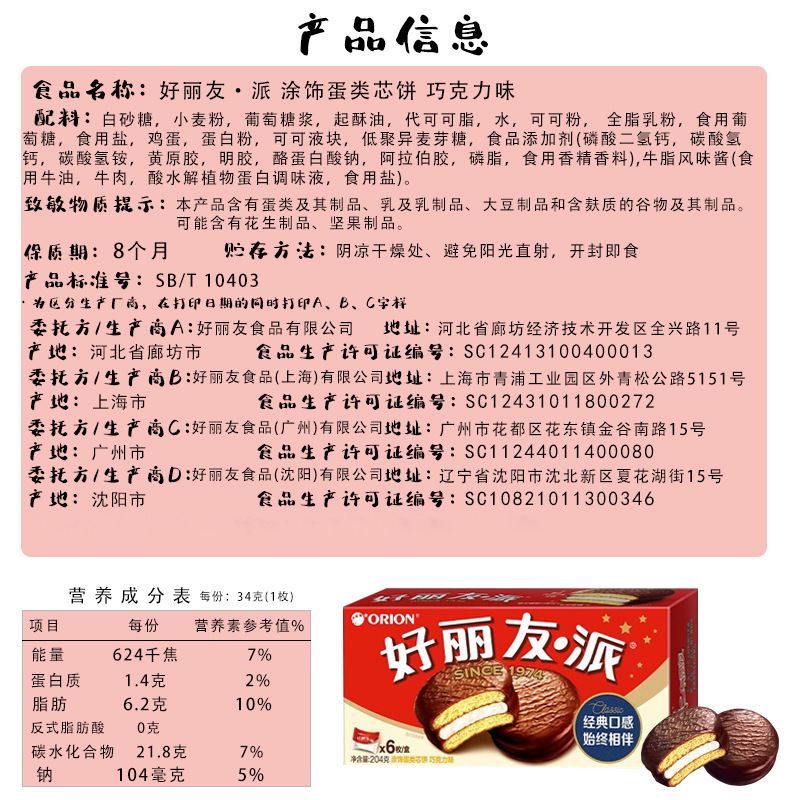 • 오리온파이(클래식초콜릿맛) 204g/박스 [16박스/박스]