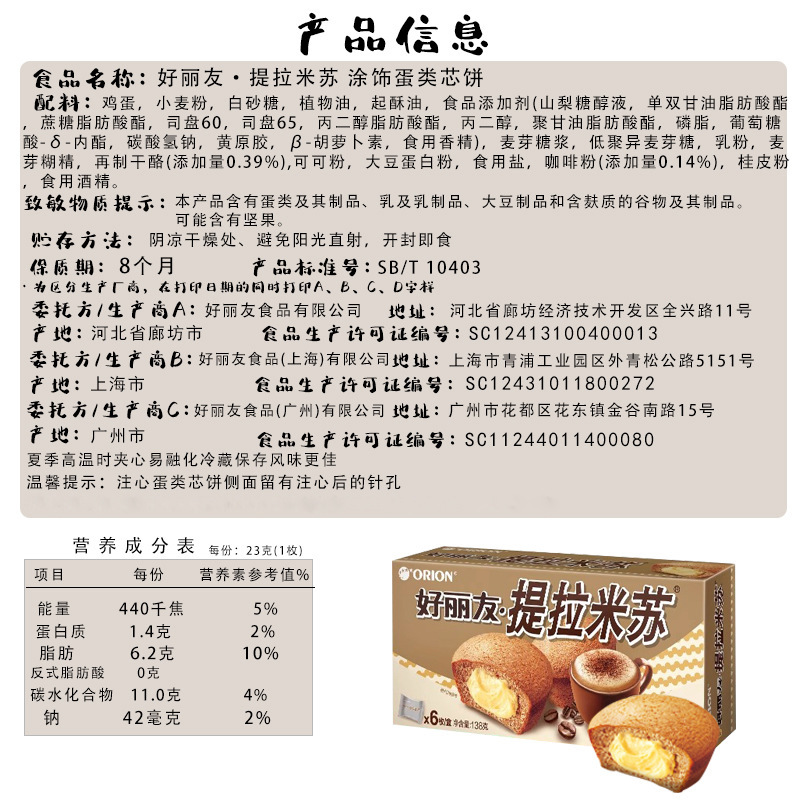 • 오리온 티라미수 138g/박스 [16박스/박스]