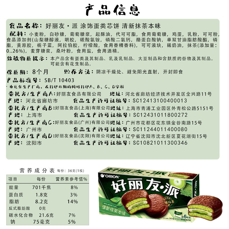 • 오리온 파이(신선한 말차 오리지널 맛) 216g/박스 [16박스/박스]