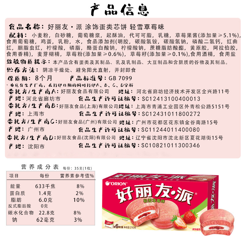 • 오리온파이(청설딸기맛) 210g/박스 [16박스/박스]