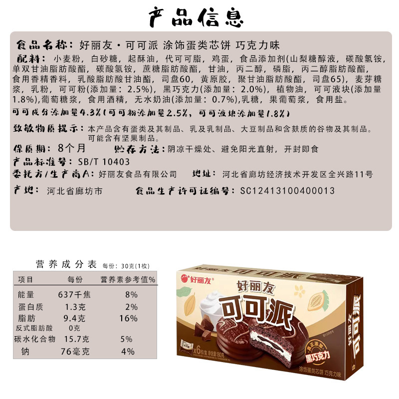 Haoliyou 달걀 노른자 파이 6 팩 클래식 웨스턴 페이스트리 아침 식사 빵 티라미수 코코아 파이 페이스트리 도매