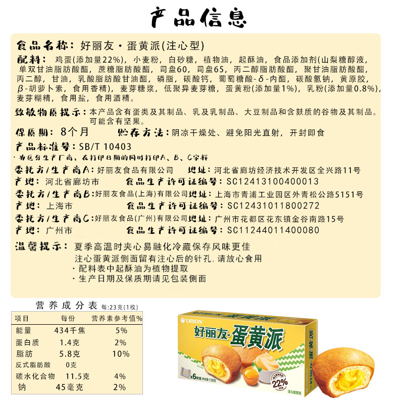 • 오리온 계란 노른자 파이 138g/박스 [16박스/박스]