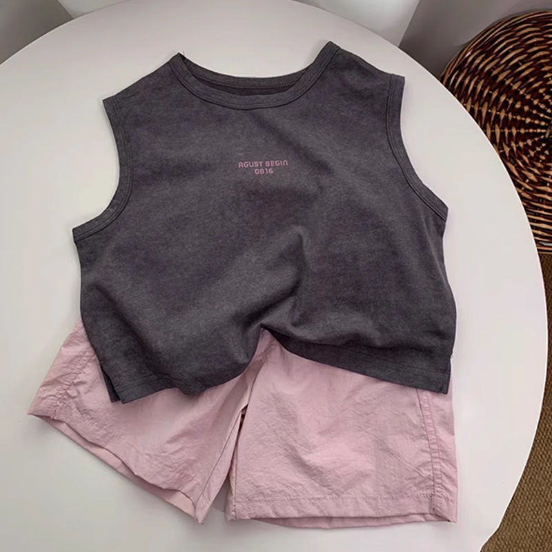 여름 소년 소녀 세트 아기 외국식 어린이 맞춤형 트렌디 브랜드 대외 무역 INS 편지 조끼 반바지 투피스 세트
