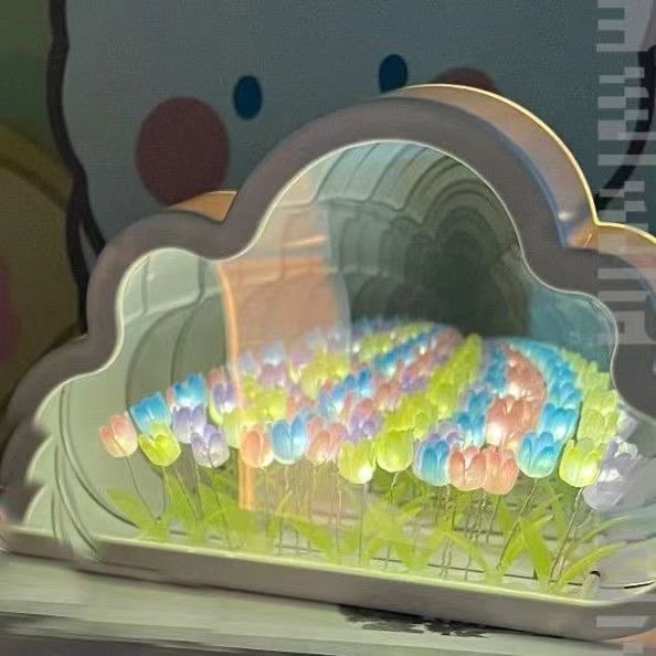 다나바타 선물 구름 거울 튤립 꽃 바다 밤 빛 소녀 만화 꽃을위한 DIY 수제 생일 선물