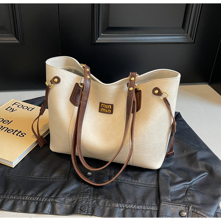 여성을 위한 질감이 있고 스타일리시한 대용량 가방 2024 새로운 패션 숄더백 틈새 인기 통근 복고풍 토트 백