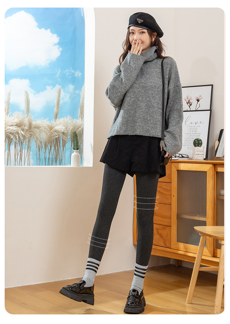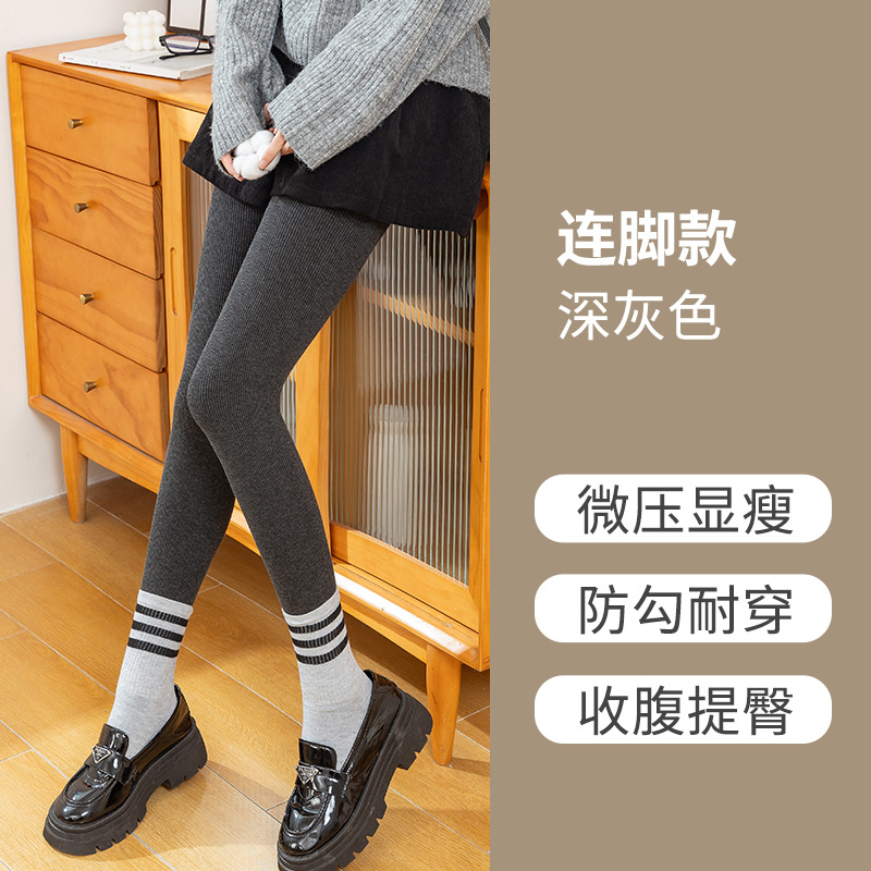 레깅스 여성의 가을과 겨울 약간의 압력 슬리밍 원피스 벨벳 두꺼운 따뜻한 면 바지 다크 그레이 수직 스트립 스레드 발 팬티 스타킹스토어 가기