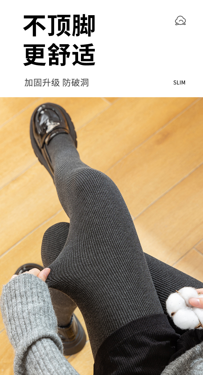 레깅스 여성의 가을과 겨울 약간의 압력 슬리밍 원피스 벨벳 두꺼운 따뜻한 면 바지 다크 그레이 수직 스트립 스레드 발 팬티 스타킹