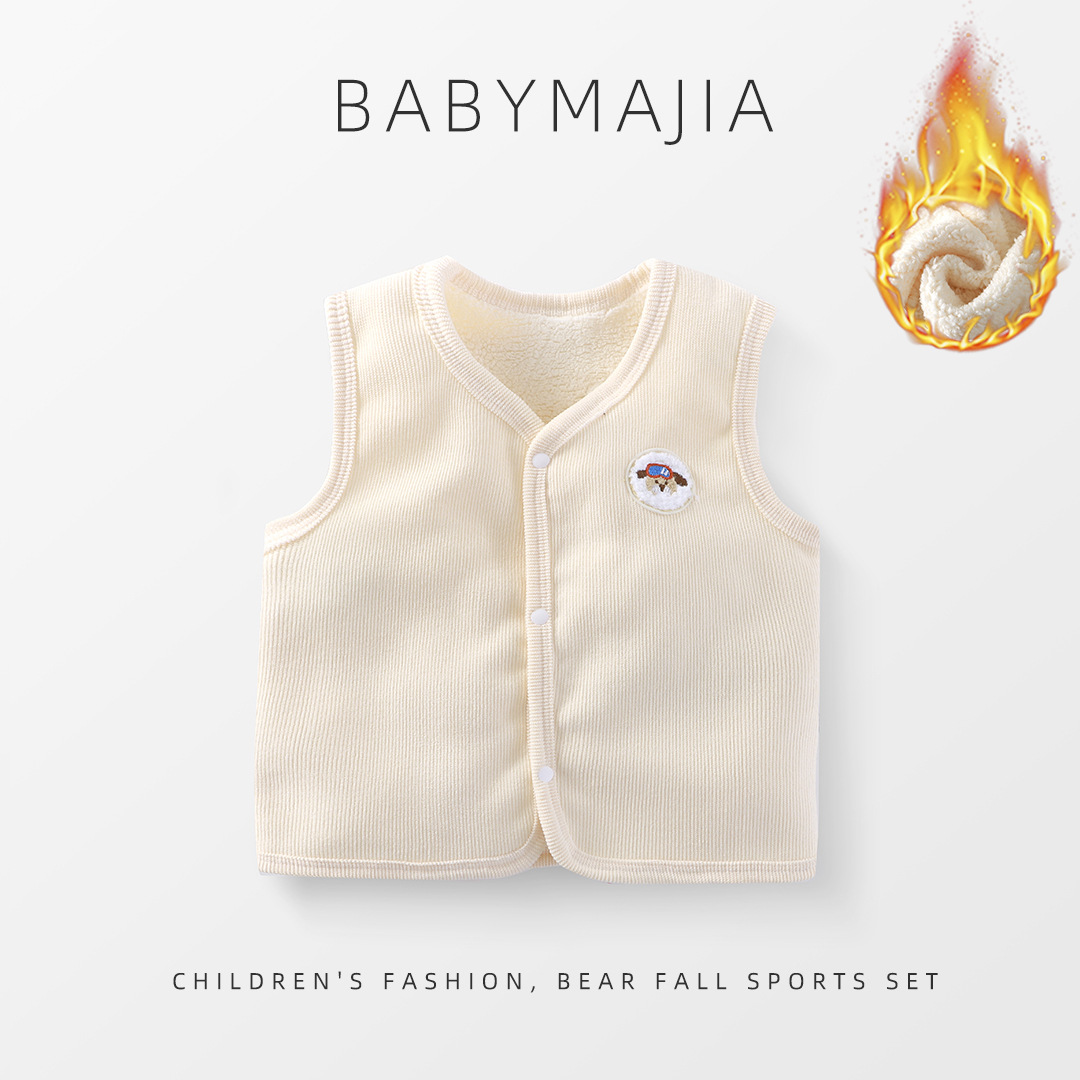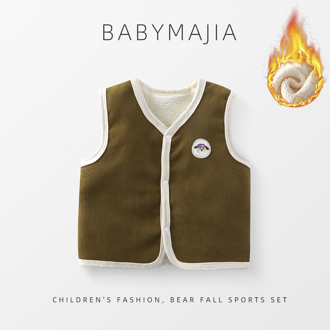 소년 소녀를위한 어린이 조끼 두꺼운 따뜻한 아우터 착용 코듀로이 가을과 겨울 기모 조끼 아기의 외부 왁스 코트스토어 가기