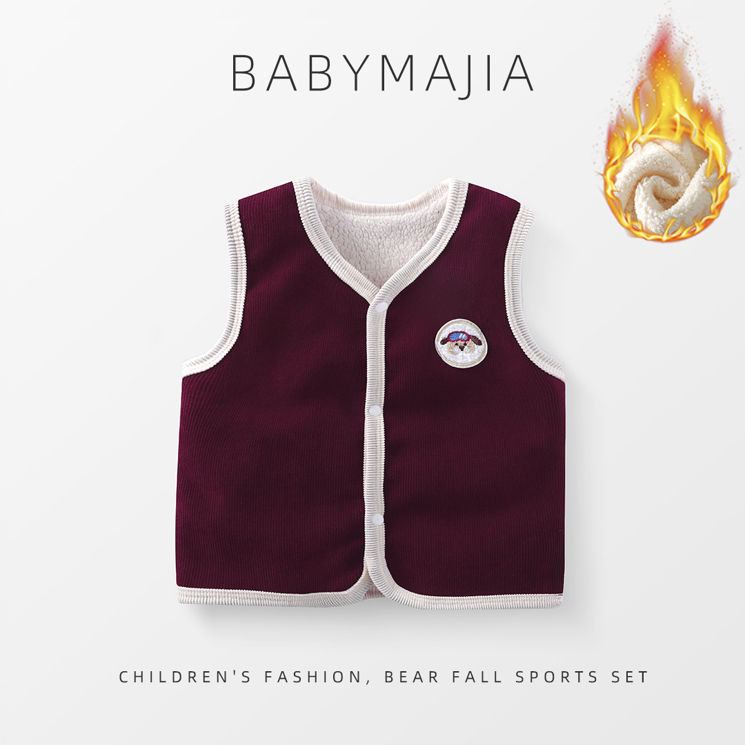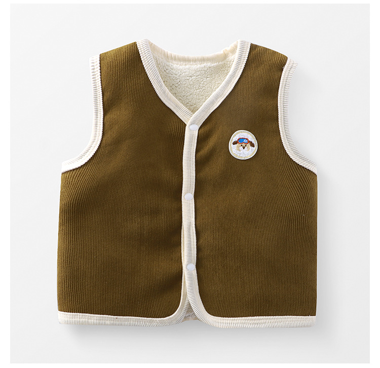 소년 소녀를위한 어린이 조끼 두꺼운 따뜻한 아우터 착용 코듀로이 가을과 겨울 기모 조끼 아기의 외부 왁스 코트