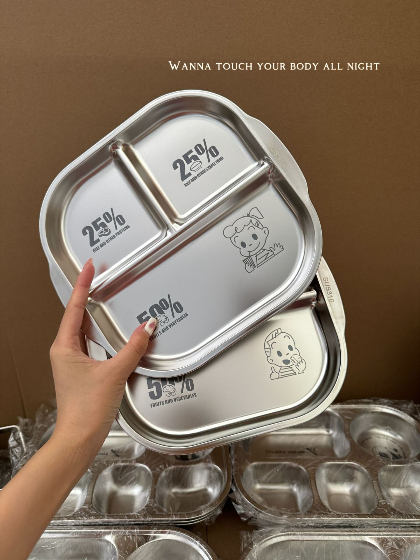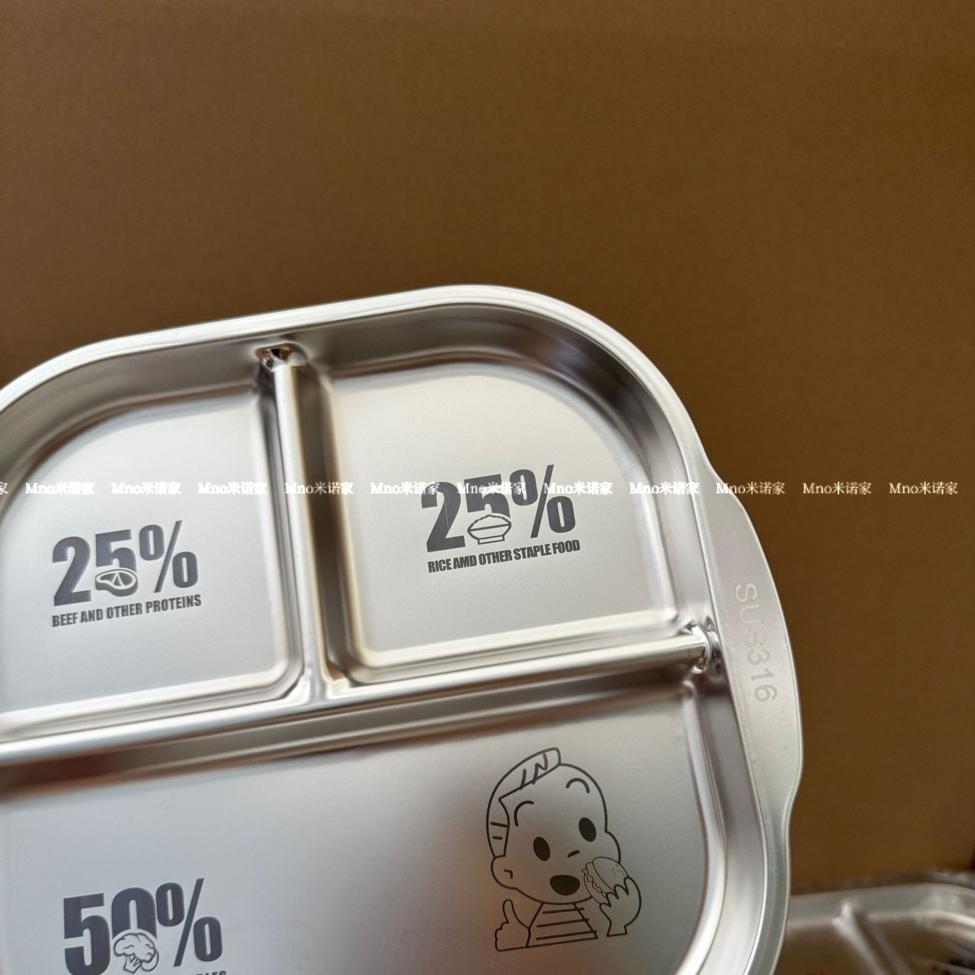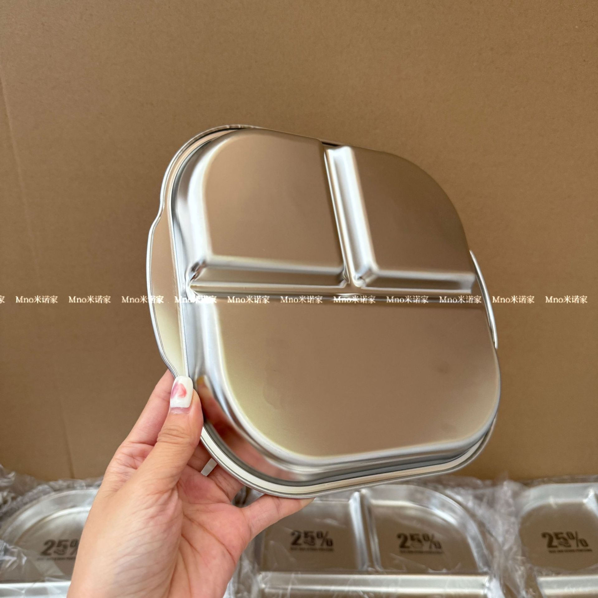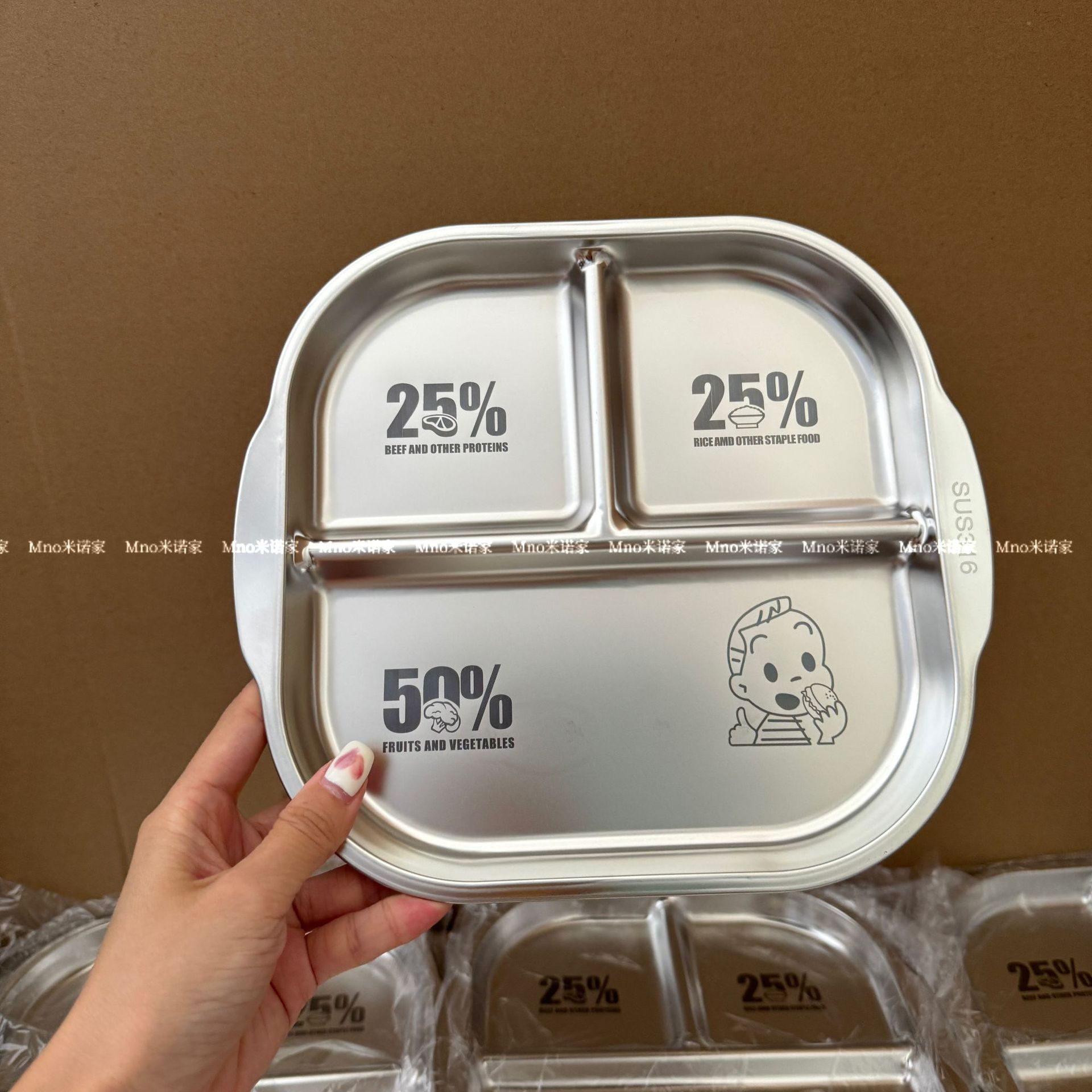 Minojia 316 스틸 디너 플레이트 지방 감소 분할 디너 플레이트 분할 디너 플레이트 학생 스테인레스 스틸 스퀘어 플레이트 귀여운 플레이트 3 분할스토어 가기