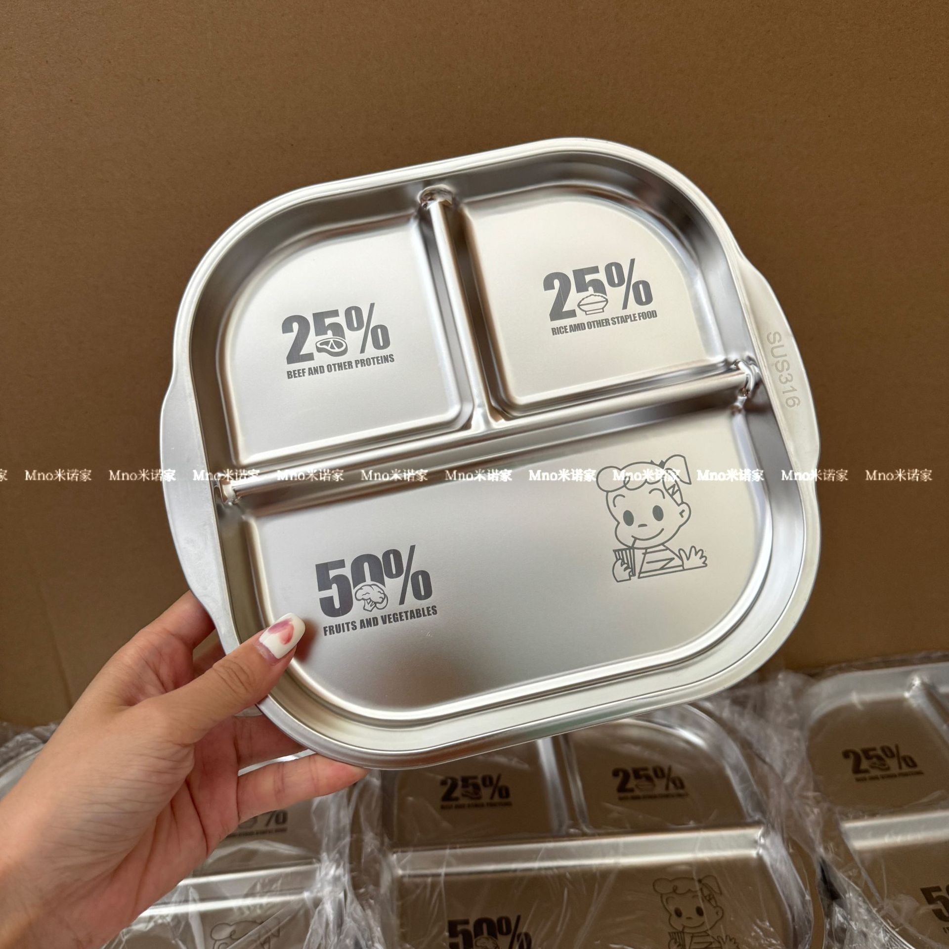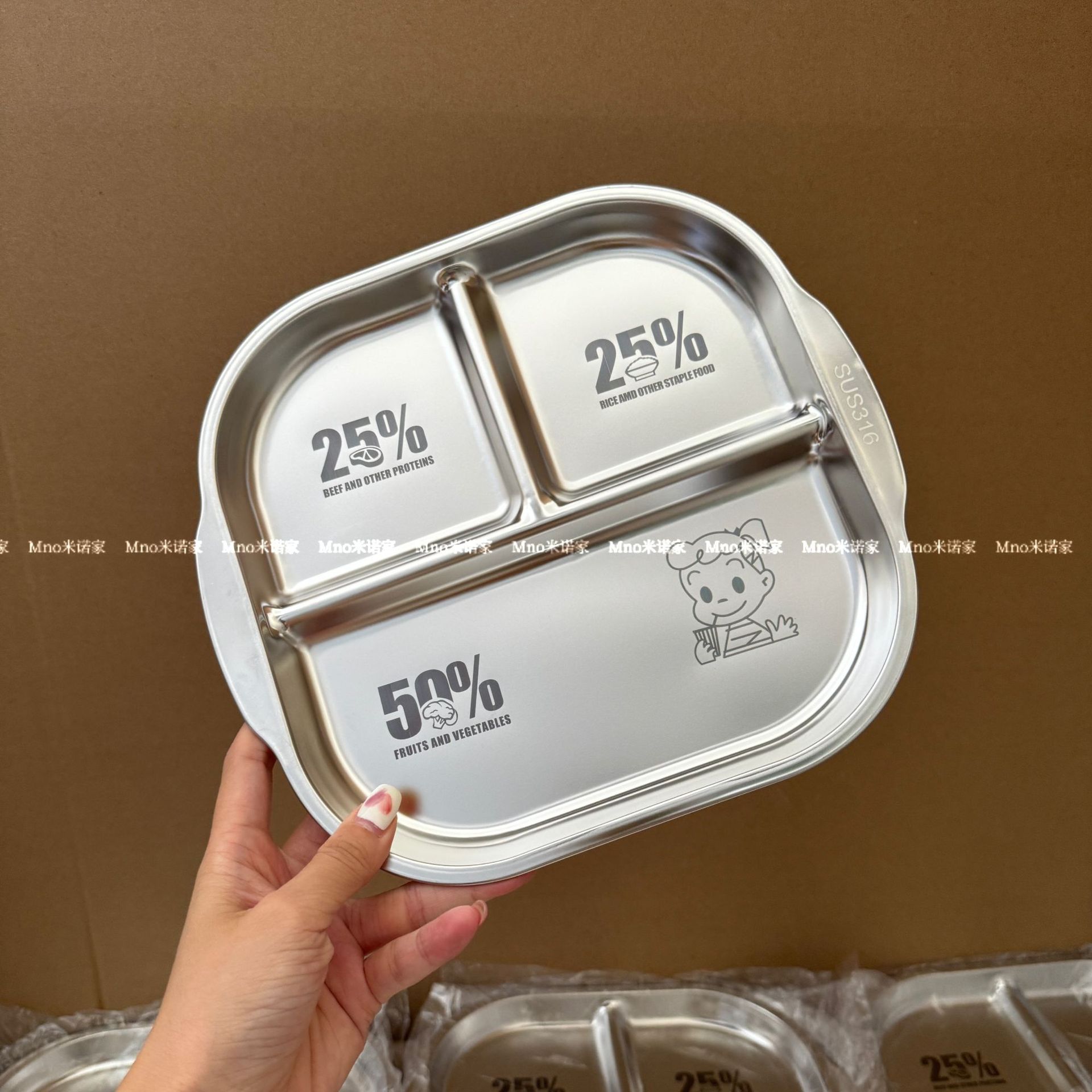 Minojia 316 스틸 디너 플레이트 지방 감소 분할 디너 플레이트 분할 디너 플레이트 학생 스테인레스 스틸 스퀘어 플레이트 귀여운 플레이트 3 분할