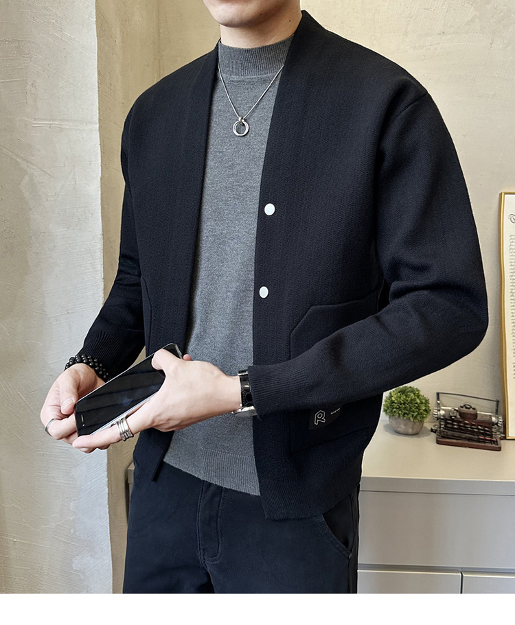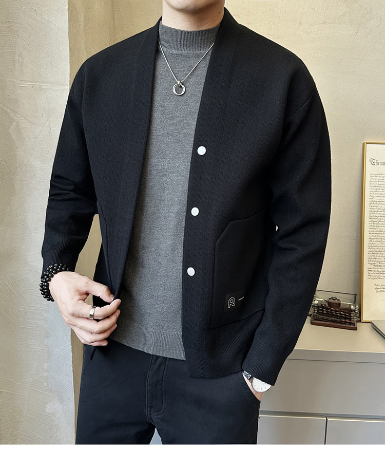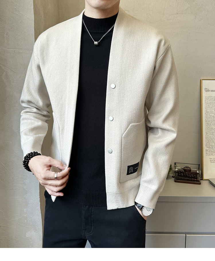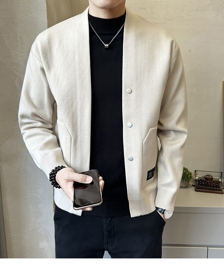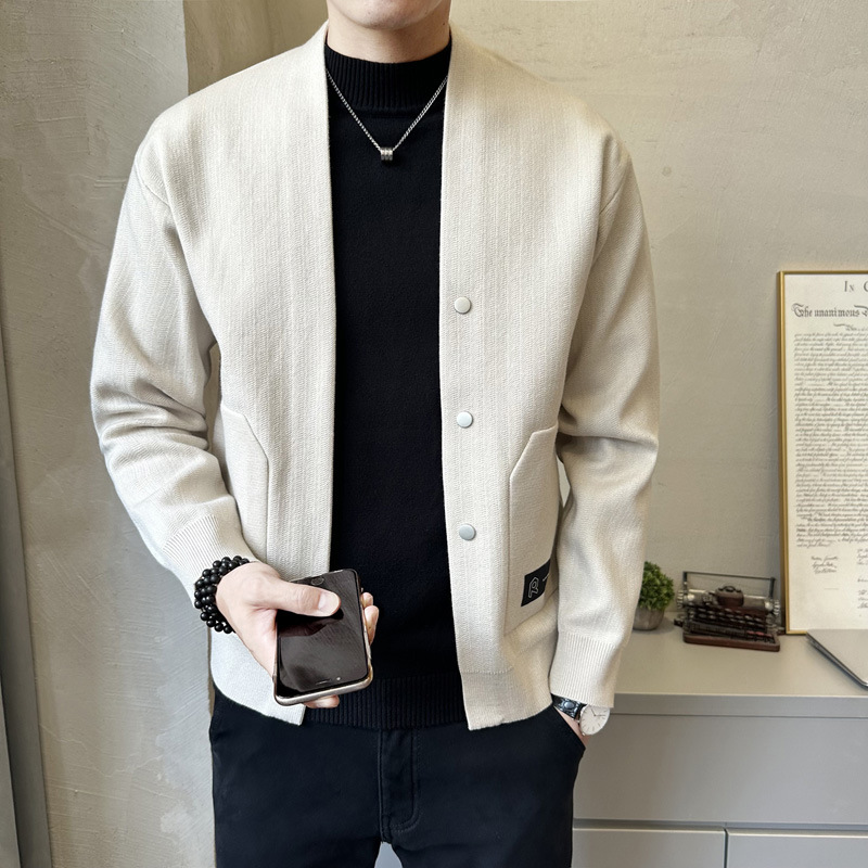 주인님 스타일 레터링 자카드 가디건 스웨터 남성복 2026 봄 남성 트렌디 캐주얼 다용도 니트 자켓스토어 가기
