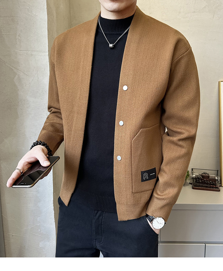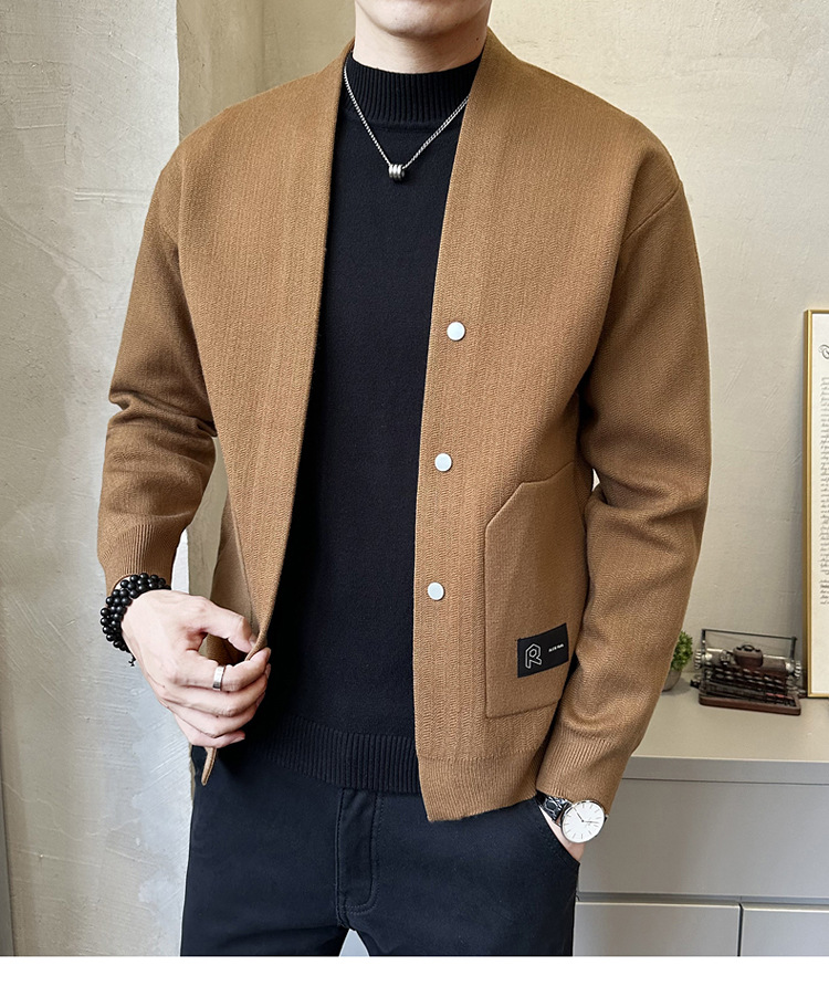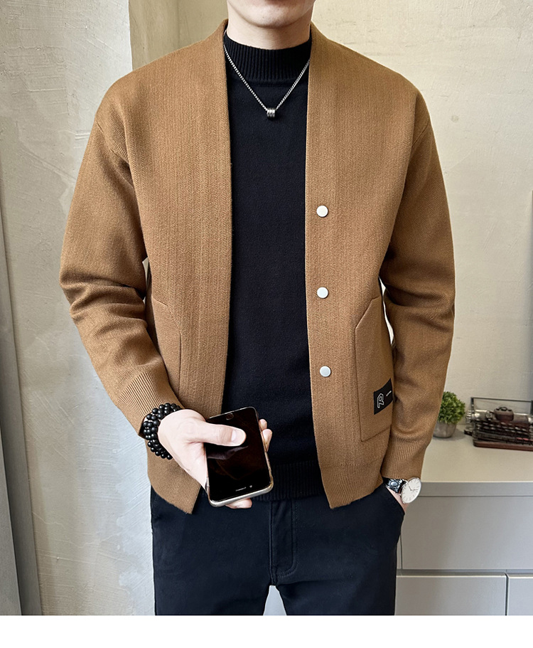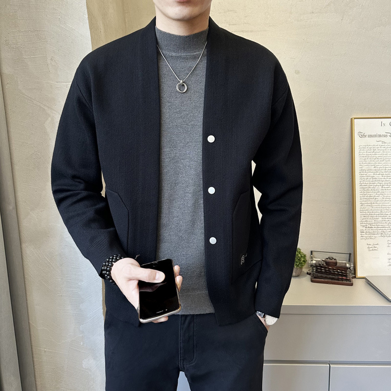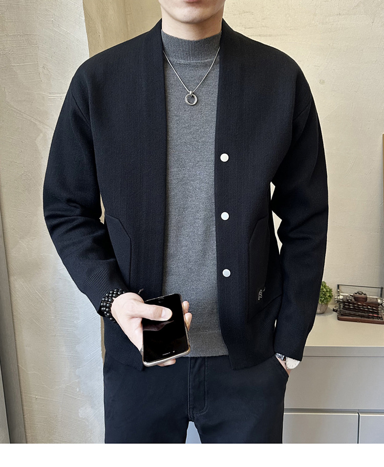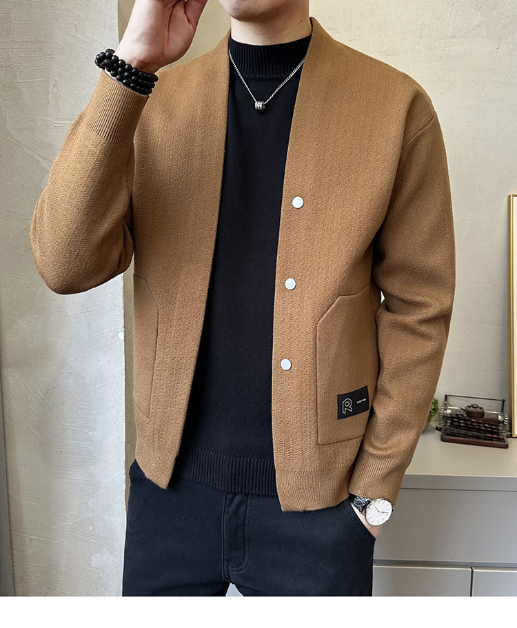 주인님 스타일 레터링 자카드 가디건 스웨터 남성복 2026 봄 남성 트렌디 캐주얼 다용도 니트 자켓스토어 가기
