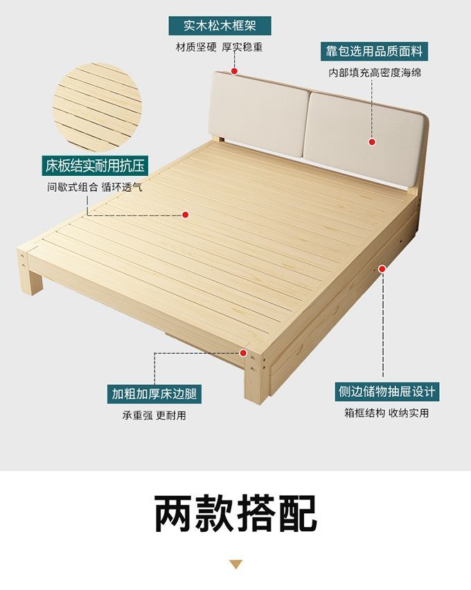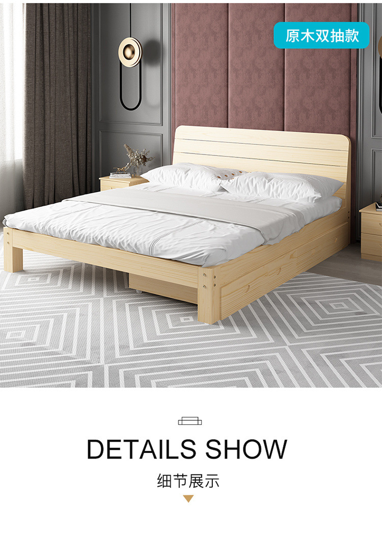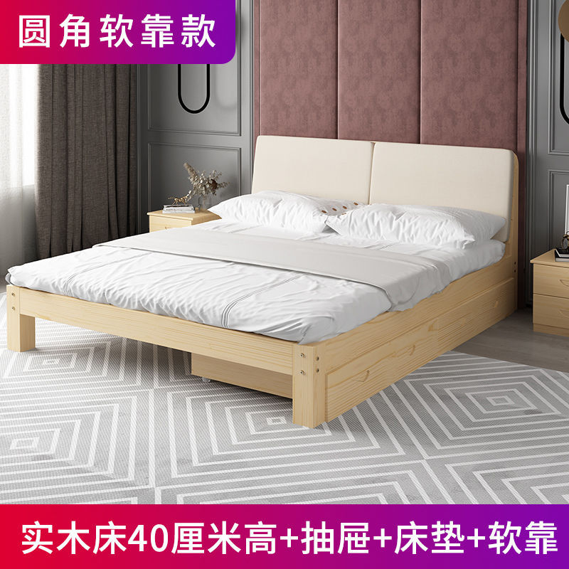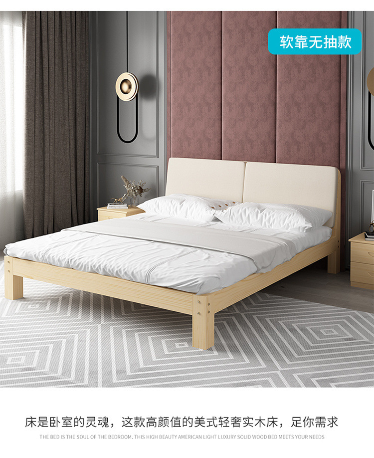 단단한 나무 침대 현대 간단한 마스터 침실 더블 렌탈 룸 침대 프레임 확장 된 침대 어린이 침대 경제적 인 간단한 싱글 침대스토어 가기