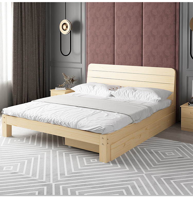 단단한 나무 침대 현대 간단한 마스터 침실 더블 렌탈 룸 침대 프레임 확장 된 침대 어린이 침대 경제적 인 간단한 싱글 침대