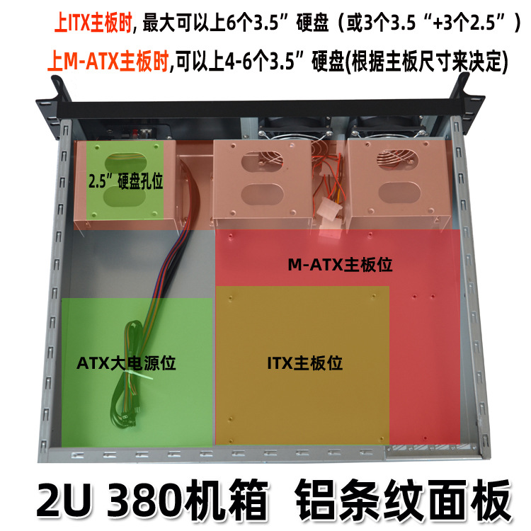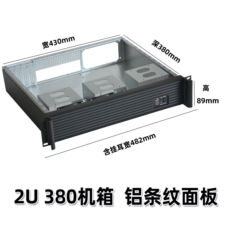 2U380 산업용 제어 섀시 MATX 마더 보드 서버 섀시 최대 6 개의 하드 디스크 비트 알루미늄 패널 ATX 파워 비트