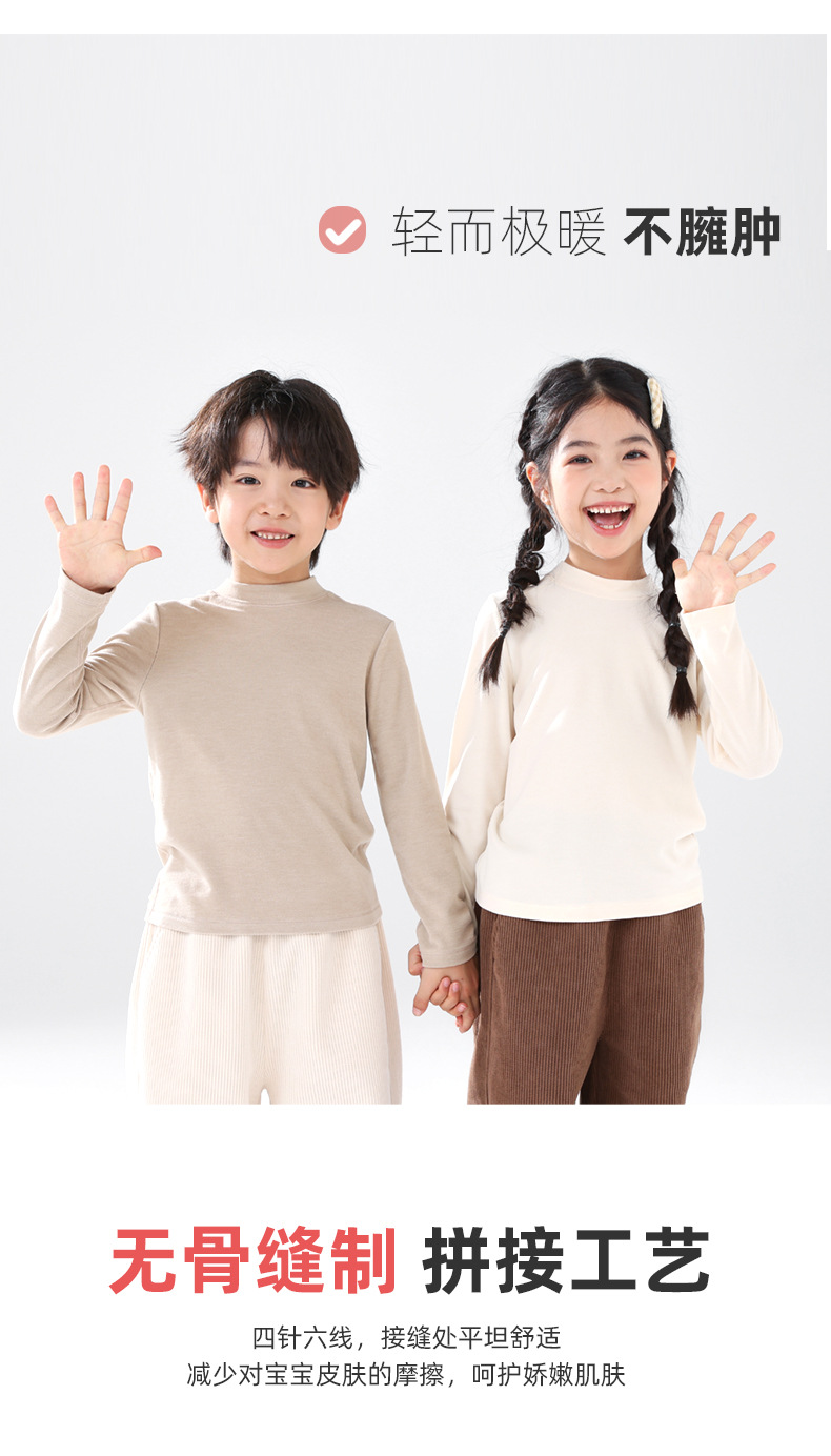 2024 어린이 모달 따뜻한 외부 착용베이스 셔츠 소년 소녀 싱글 가을 옷 기모 중 큰 어린이를위한 속옷스토어 가기