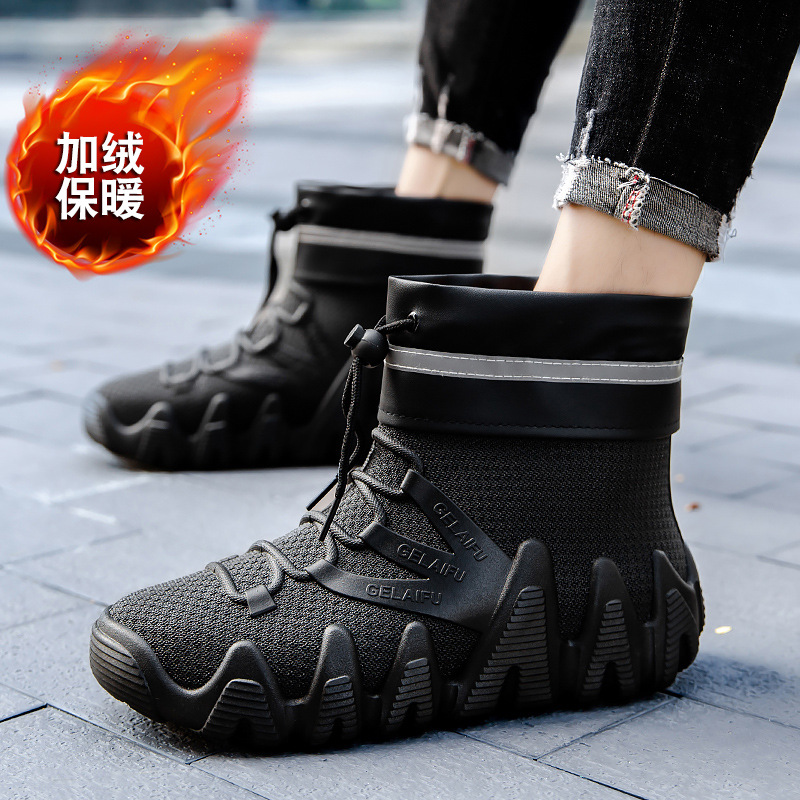가을과 겨울 짧은 장화 남성용 따뜻한 면화 장화 저급 Meituan 식사 배달 방수 신발 고무 반감기