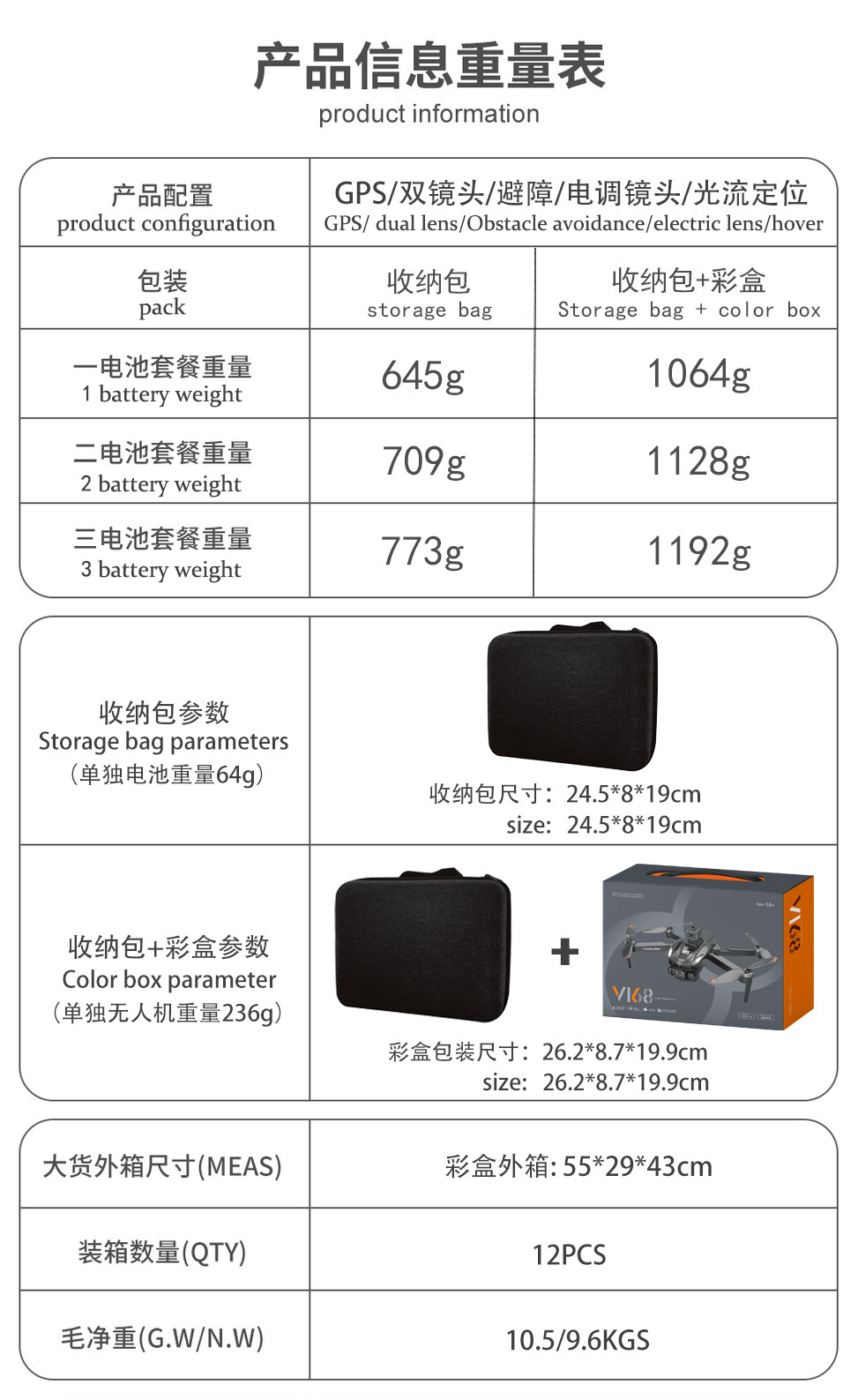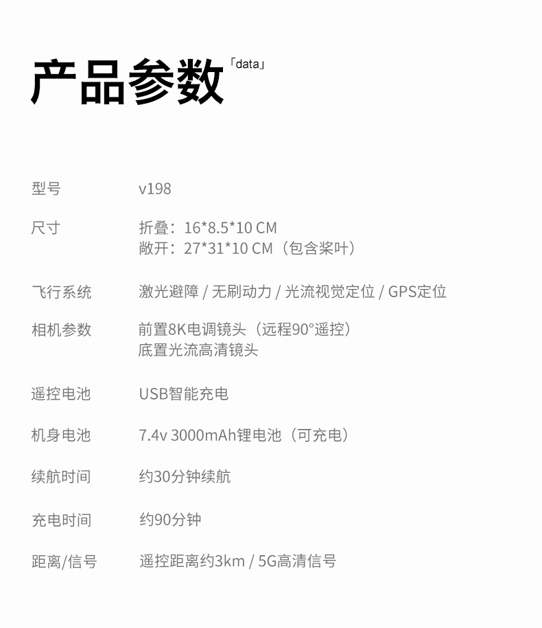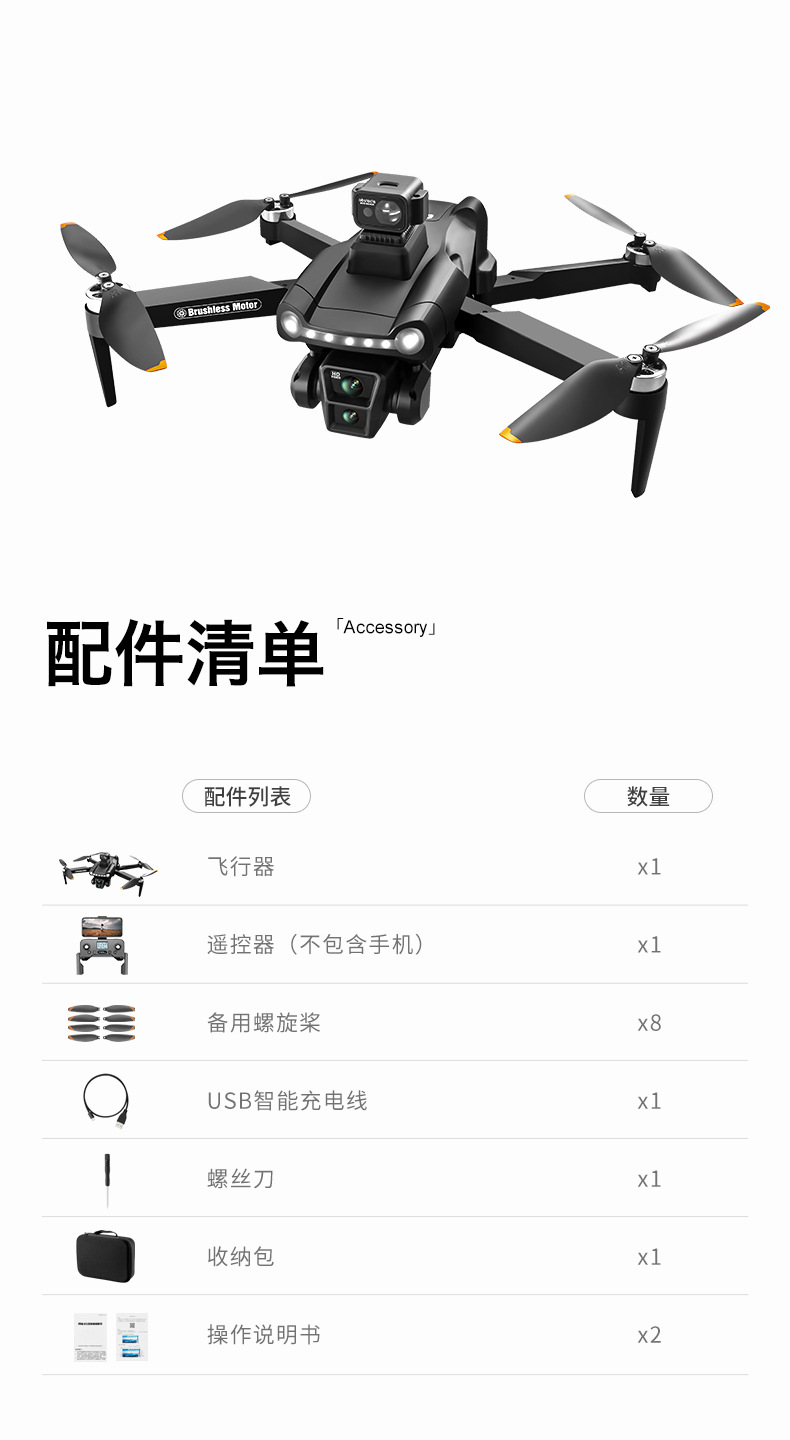• 장애물 회피 버전 없음(GPS 포지셔닝 + 브러시리스 모터 + 광학 흐름 + 전자 제어 듀얼 카메라)