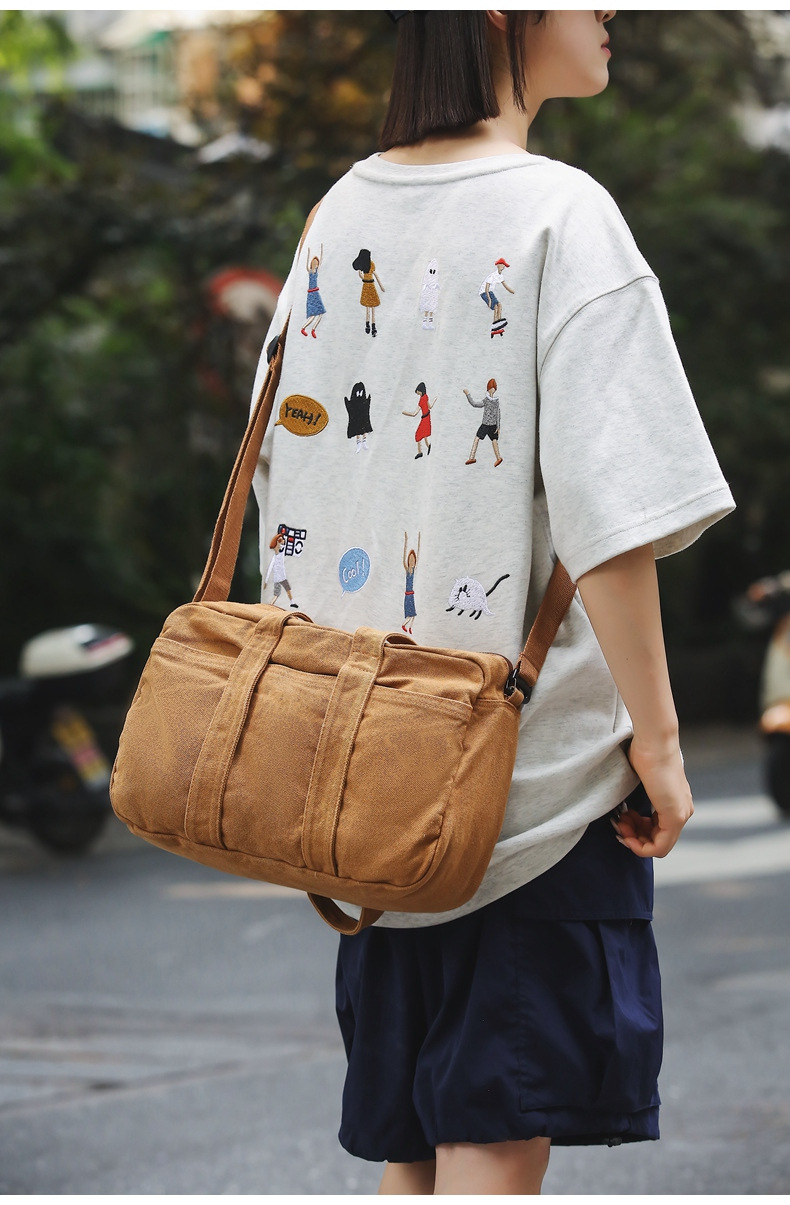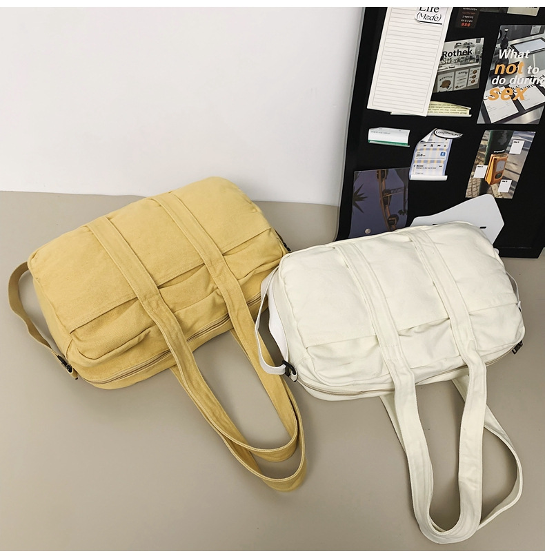 캔버스 어깨 가방 2024 새로운 대용량 캐주얼 올 매치 핸드백 다기능 학생 클래스 크로스 바디 백