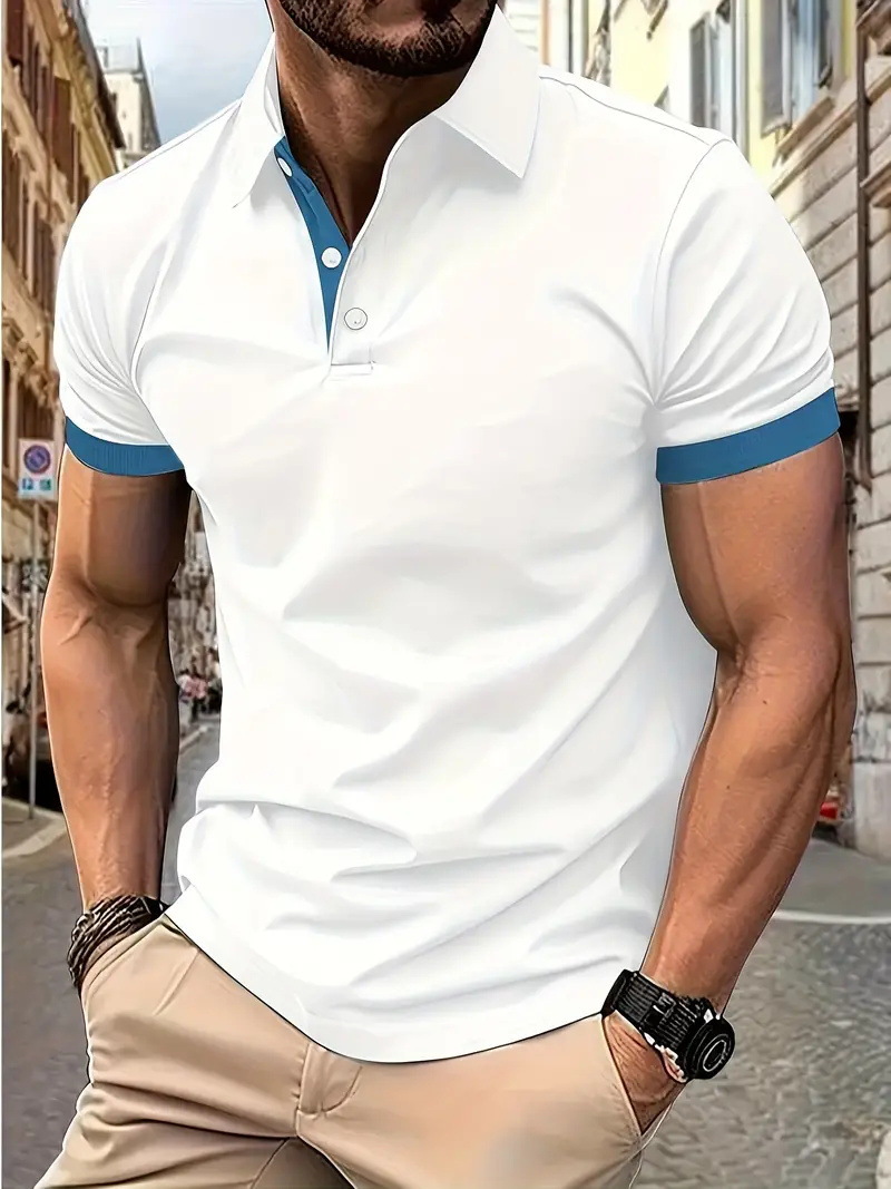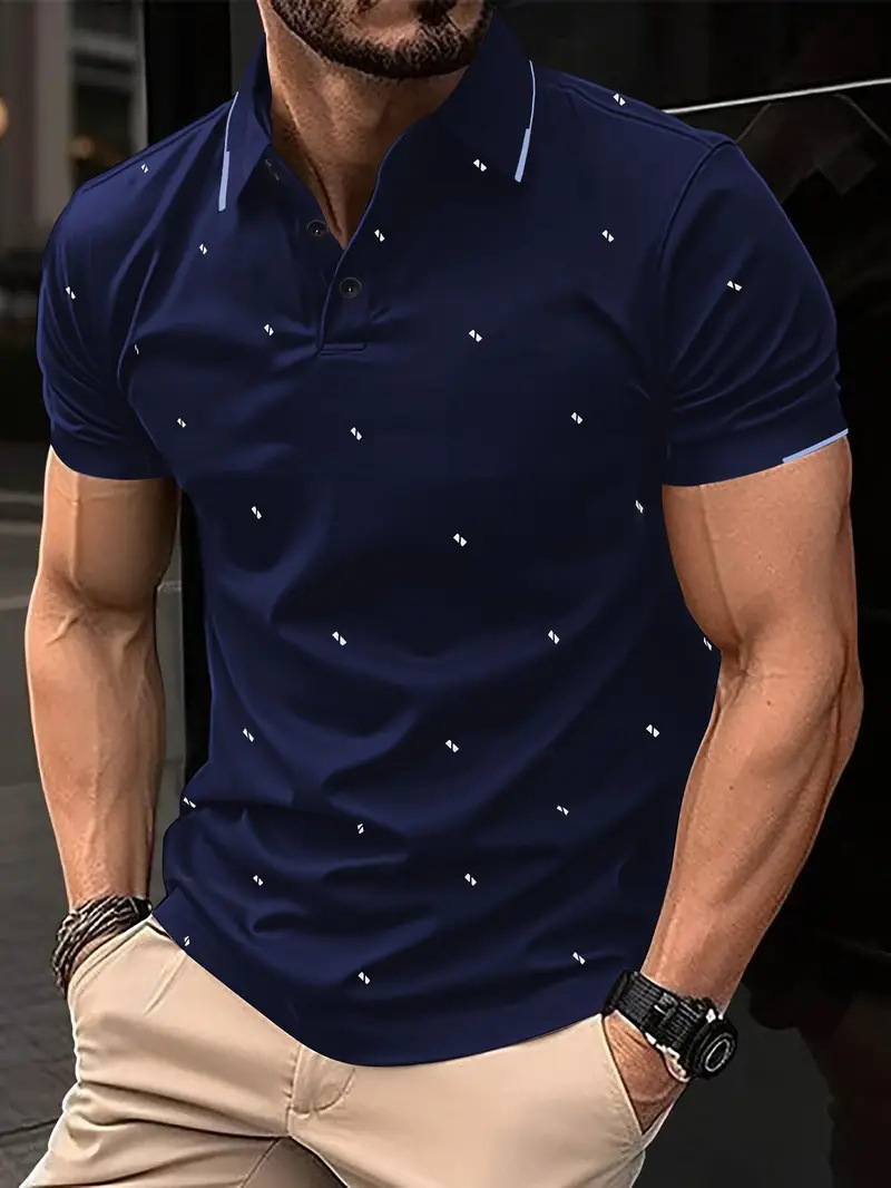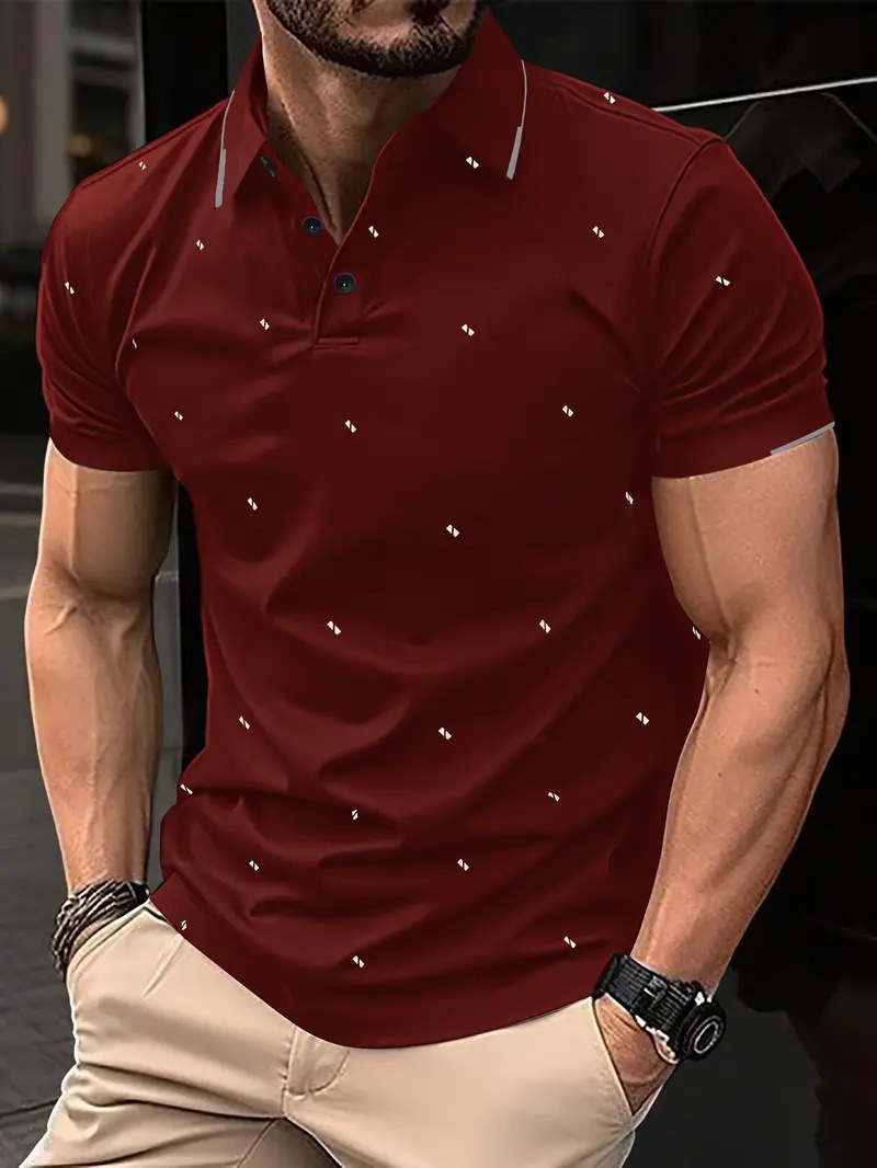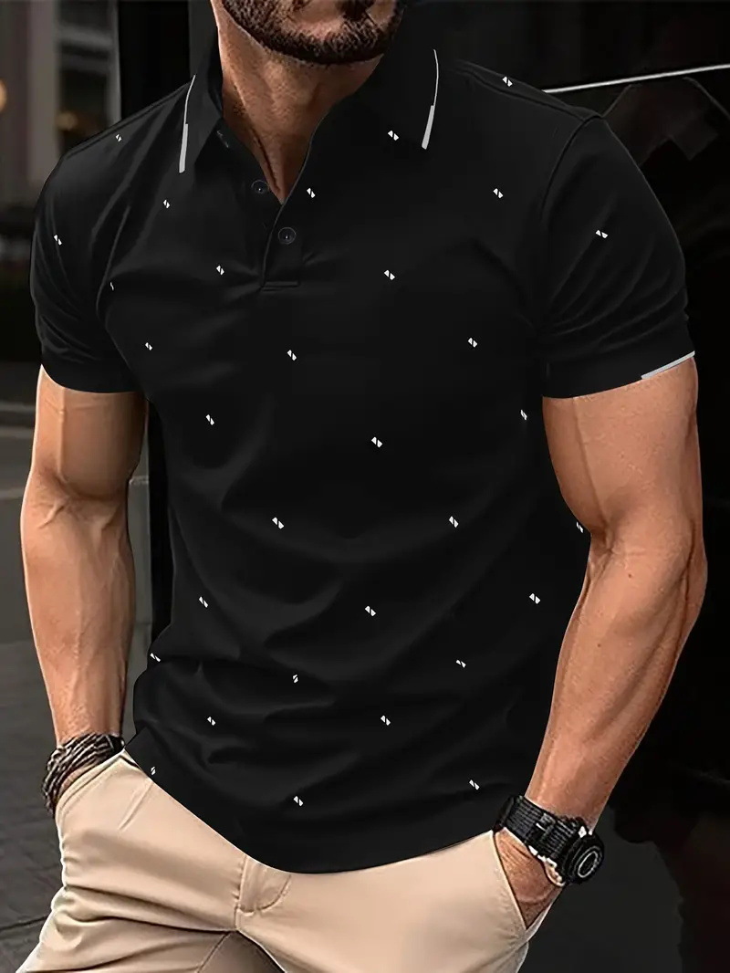 2024 대외 무역 국경 새로운 3D 디지털 인쇄 단색 옷깃 짧은 소매 폴로 셔츠 캐주얼 비즈니스 남성 의류스토어 가기
