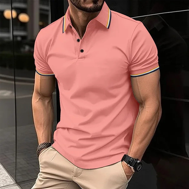 2024 대외 무역 국경 새로운 3D 디지털 인쇄 단색 옷깃 짧은 소매 폴로 셔츠 캐주얼 비즈니스 남성 의류