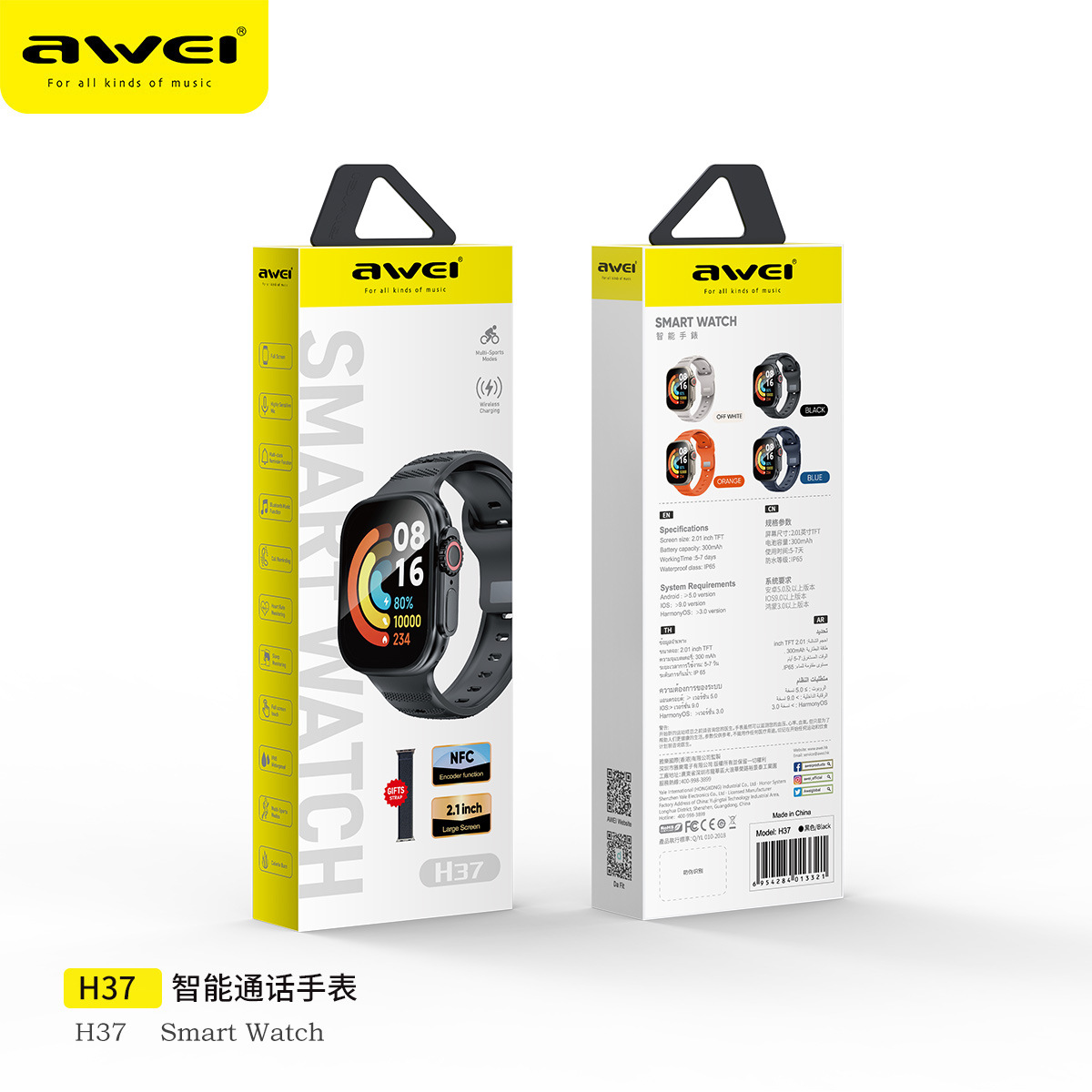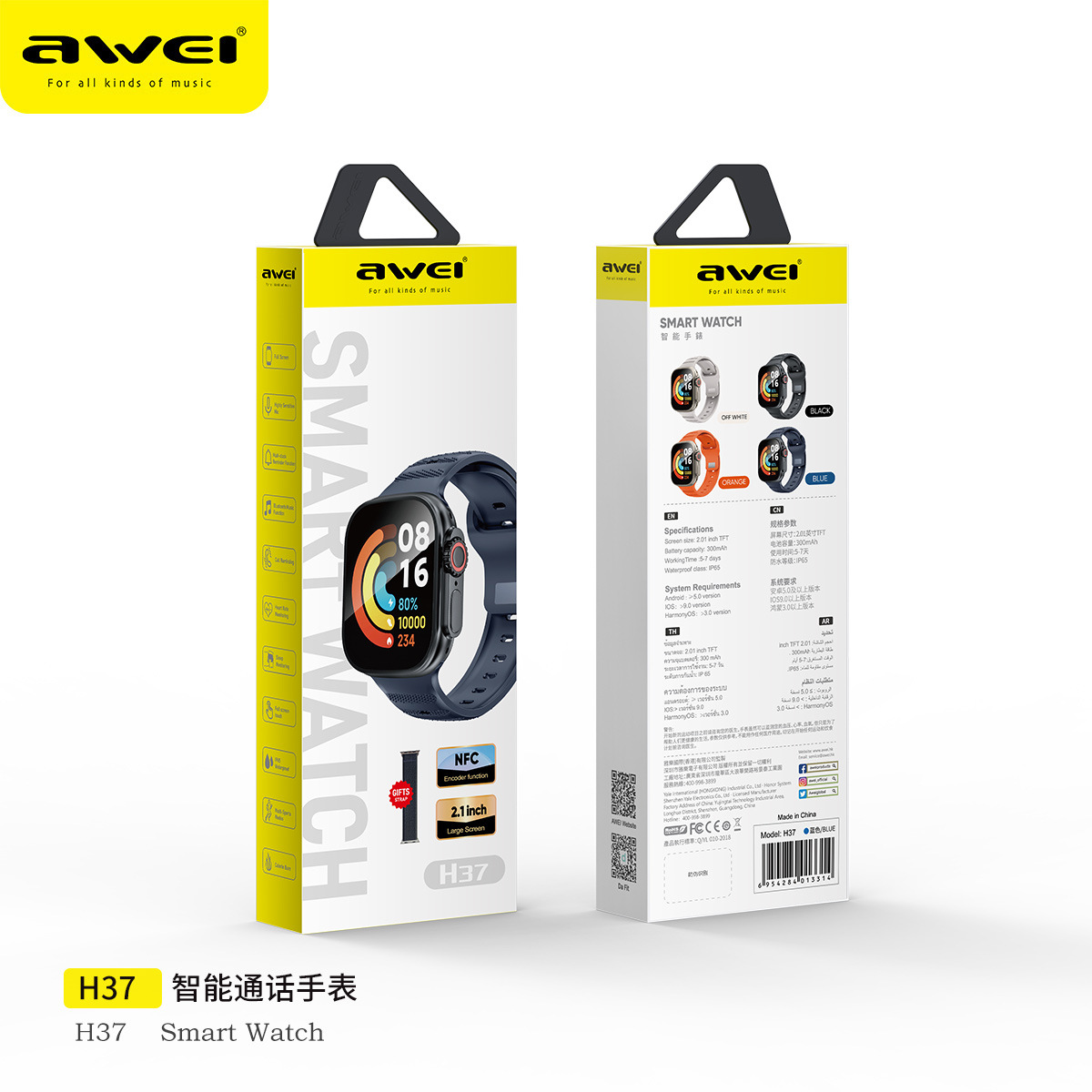 NFC 기능이있는 Awei H37 스마트 시계 HD 초박형 대형 스크린 스포츠 건강 모니터링 남성과 여성스토어 가기