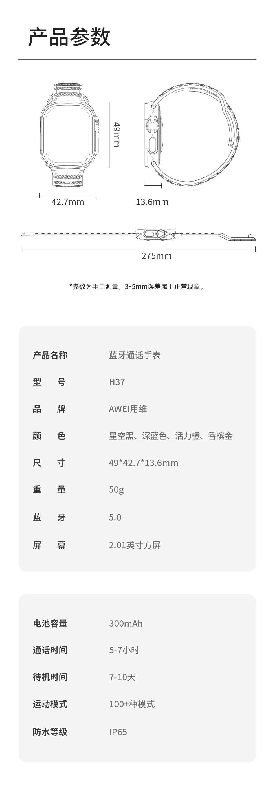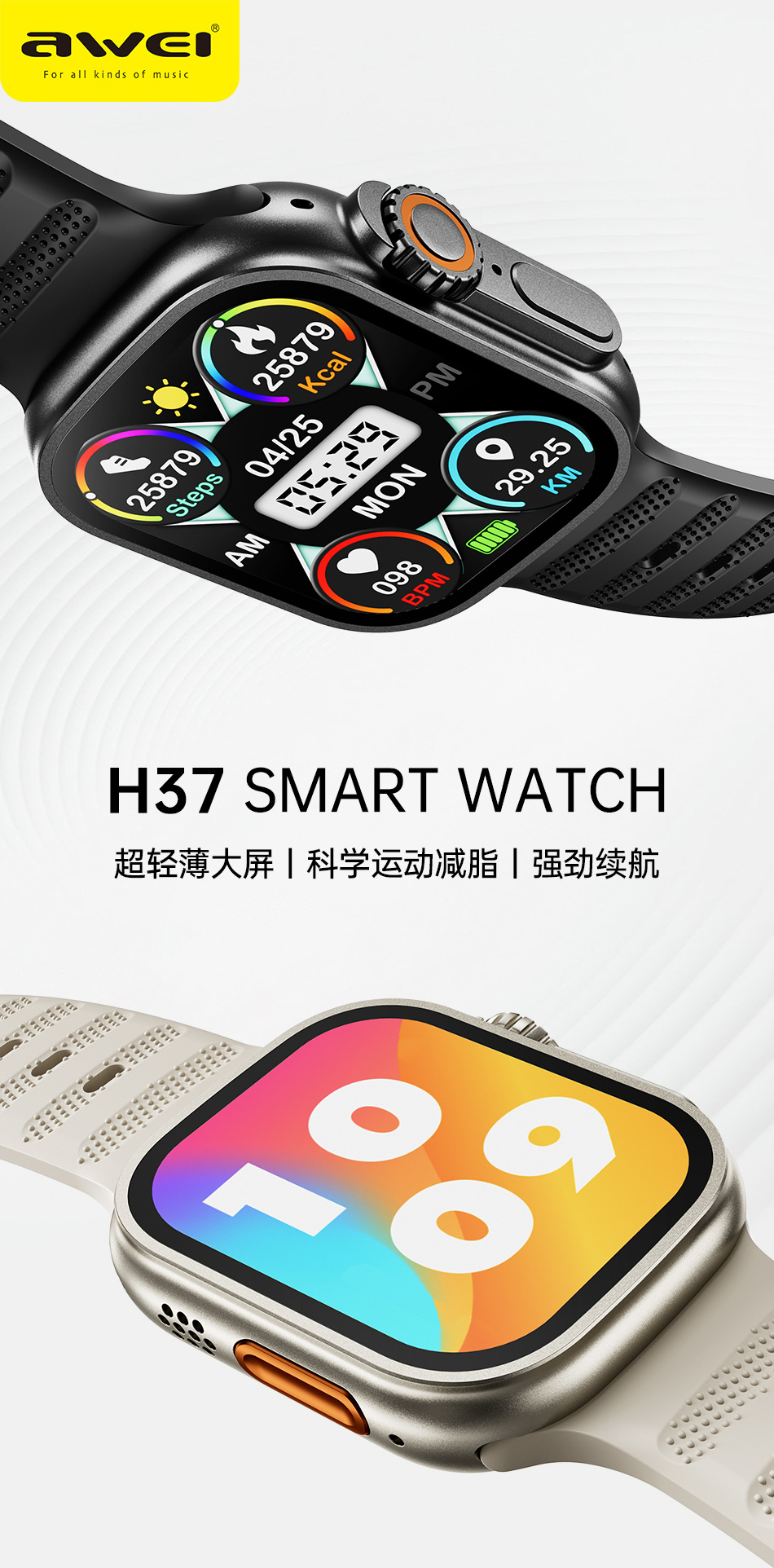 NFC 기능이있는 Awei H37 스마트 시계 HD 초박형 대형 스크린 스포츠 건강 모니터링 남성과 여성