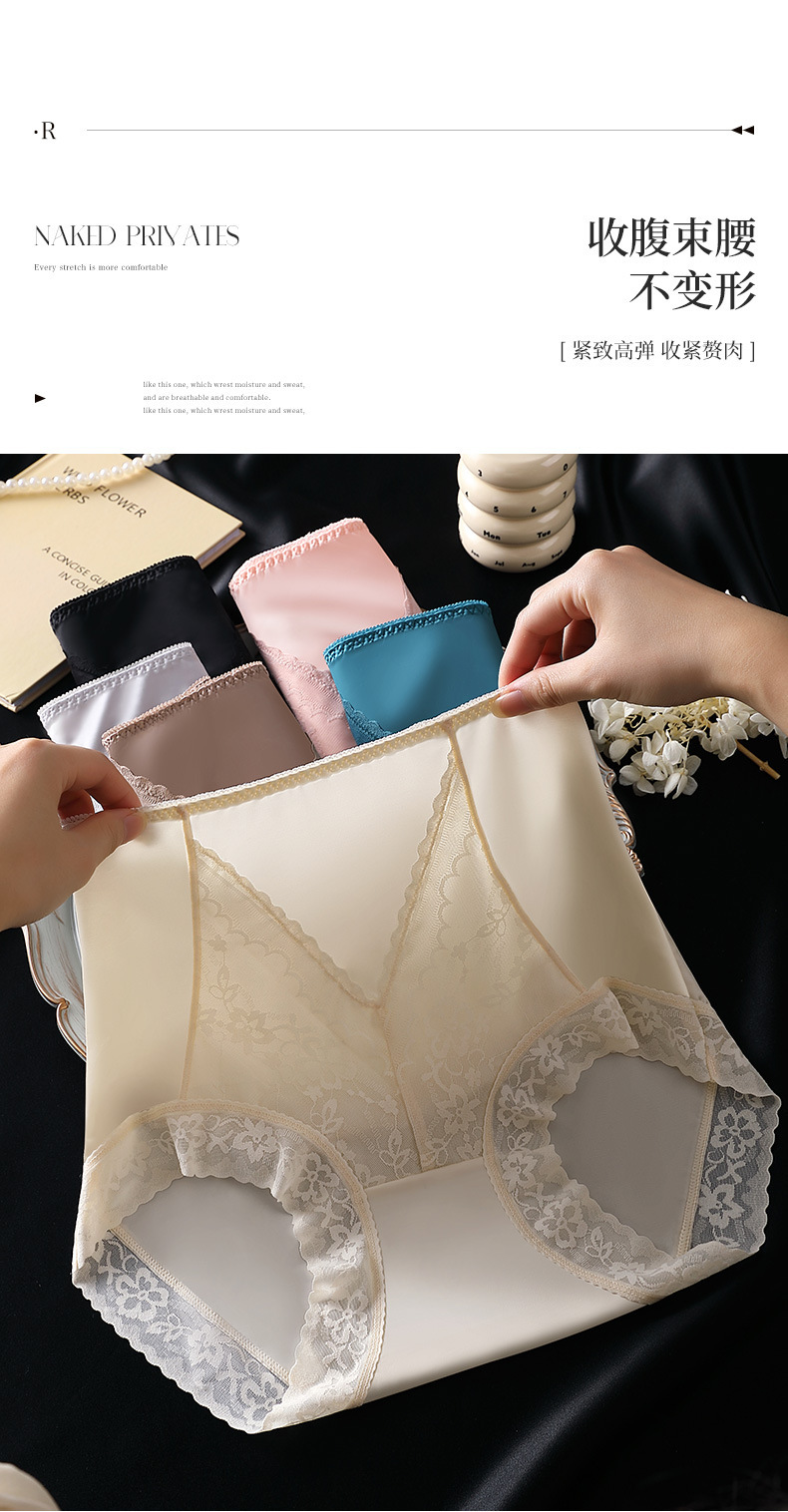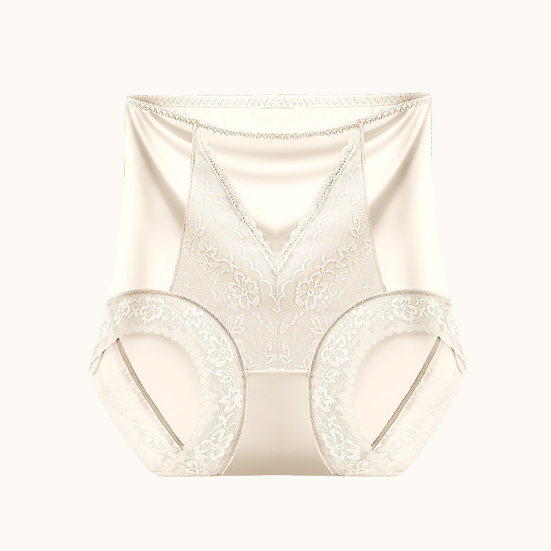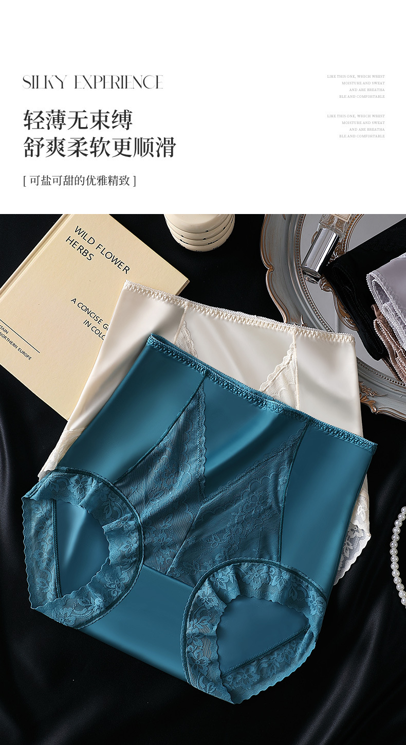여성용 무봉제 하이웨이스트 뱃살 보정 팬티, 레이스 반바지, 엉덩이를 감싸는 통기성 있는 멀버리 실크 항균 가랑이 팬티, 슬리밍 효과