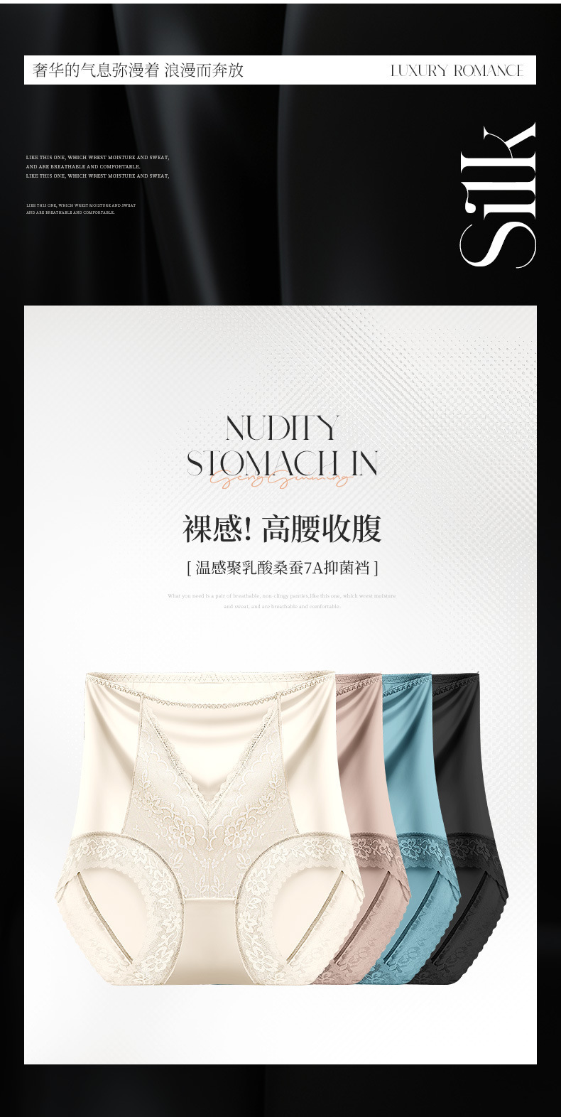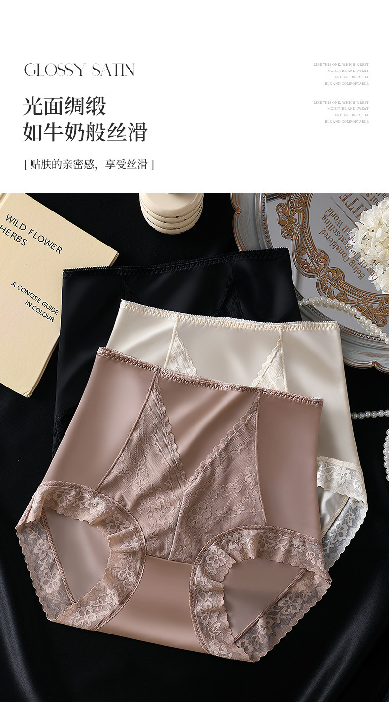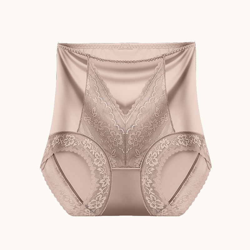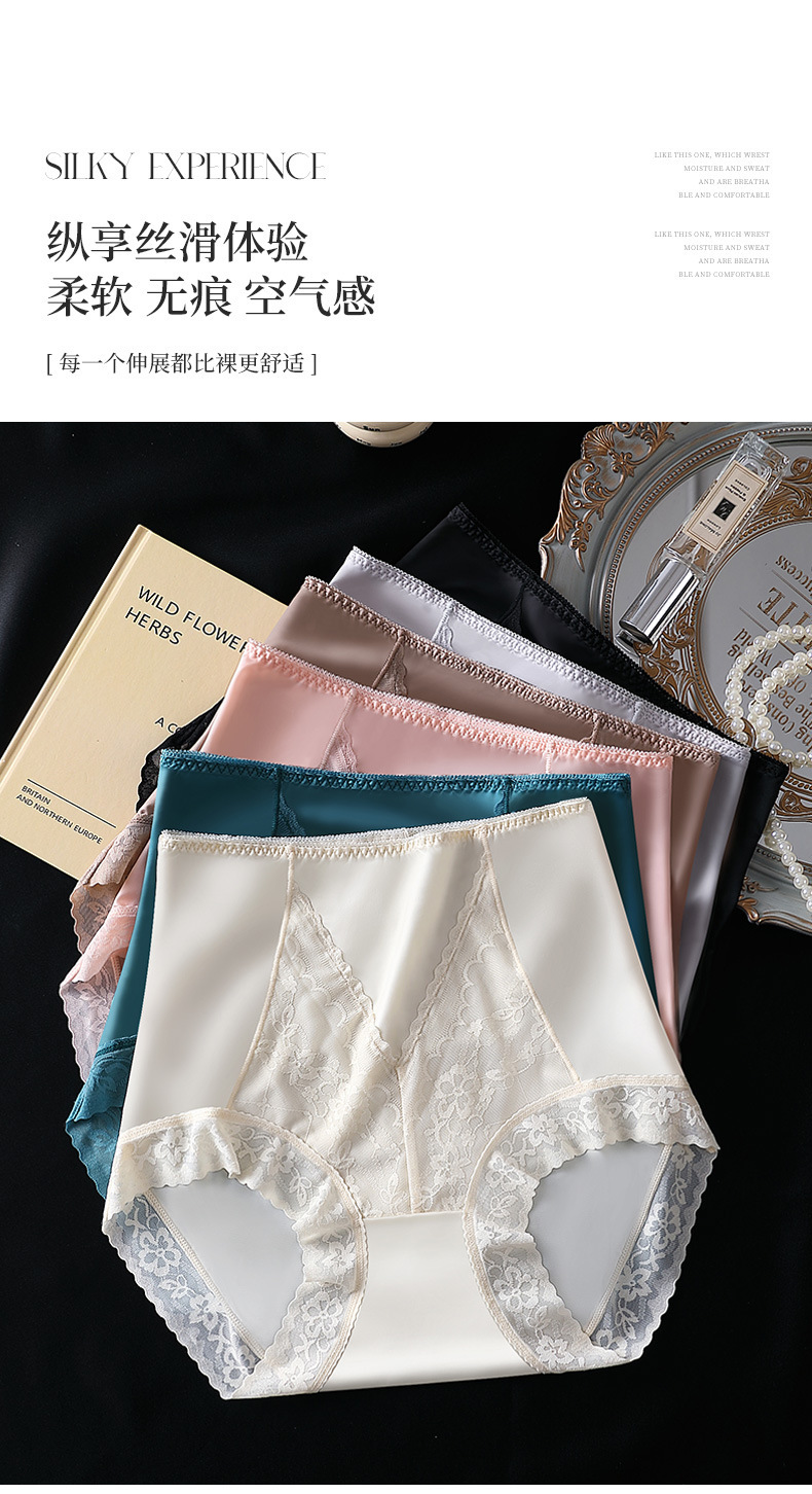 여성용 무봉제 하이웨이스트 뱃살 보정 팬티, 레이스 반바지, 엉덩이를 감싸는 통기성 있는 멀버리 실크 항균 가랑이 팬티, 슬리밍 효과