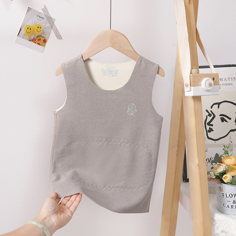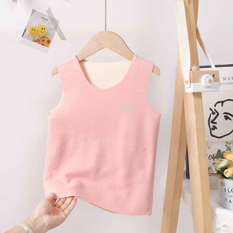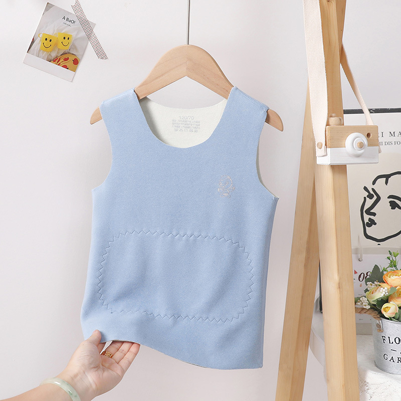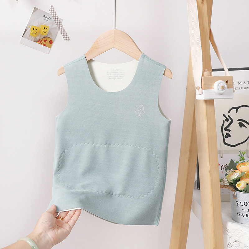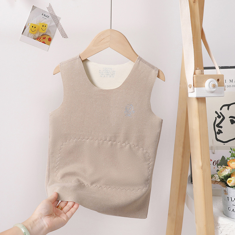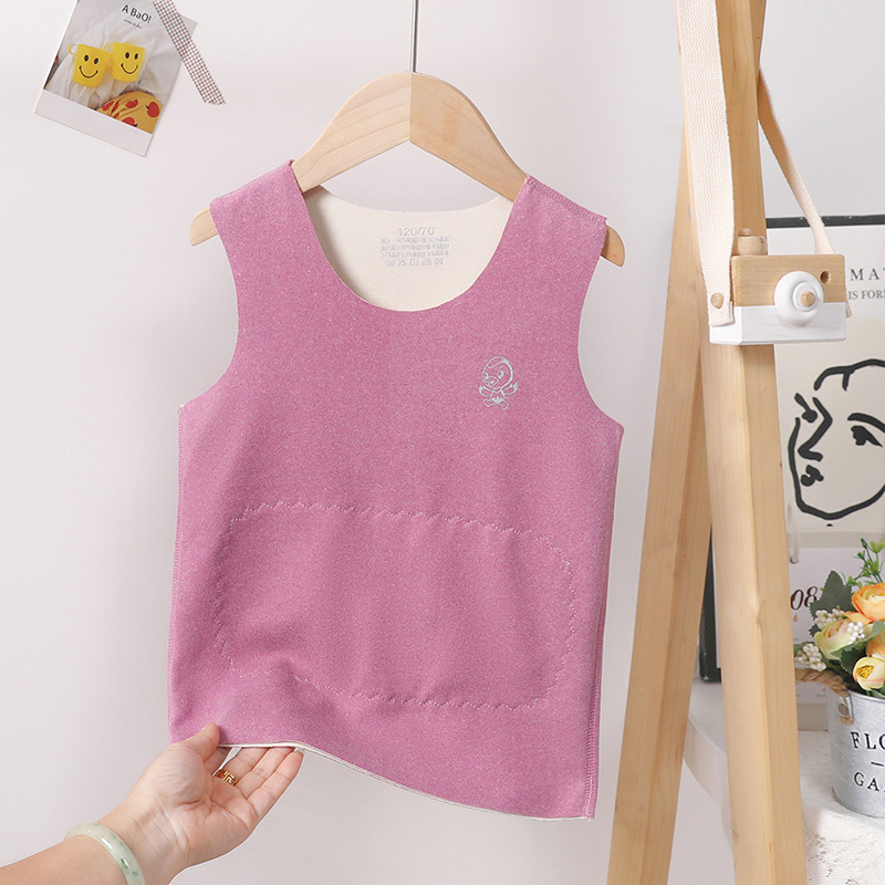 어린이 내부 착용 열 조끼 Traceless 기모 기모 더블 레이어 열 패치 벨리 프로텍터 가을과 겨울 두꺼운 조끼 어깨 허리 코트