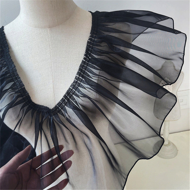 20cm 폭 블랙 오간자 주름진 레이스 레이스 의류 커튼 패브릭 스커트 DIY 장식스토어 가기