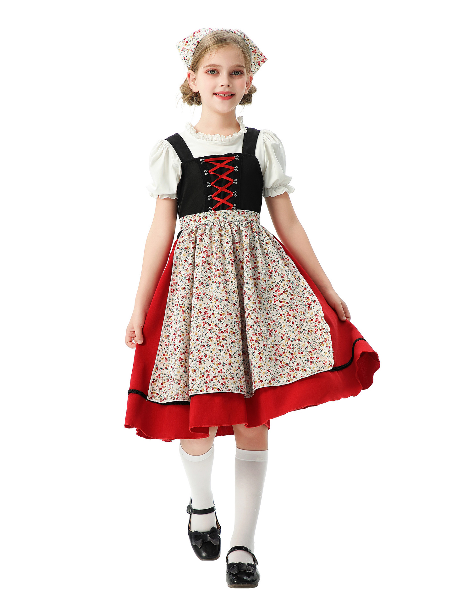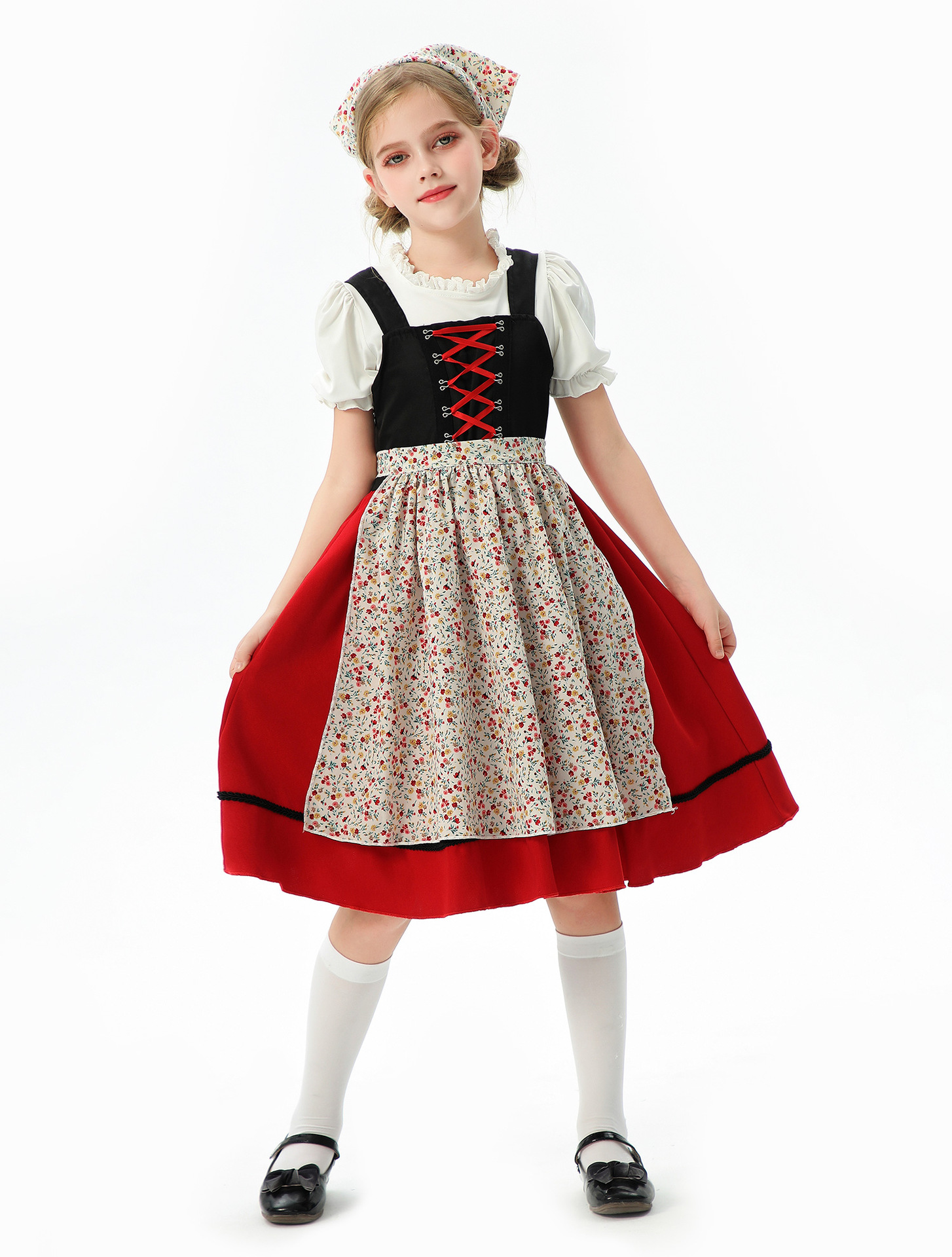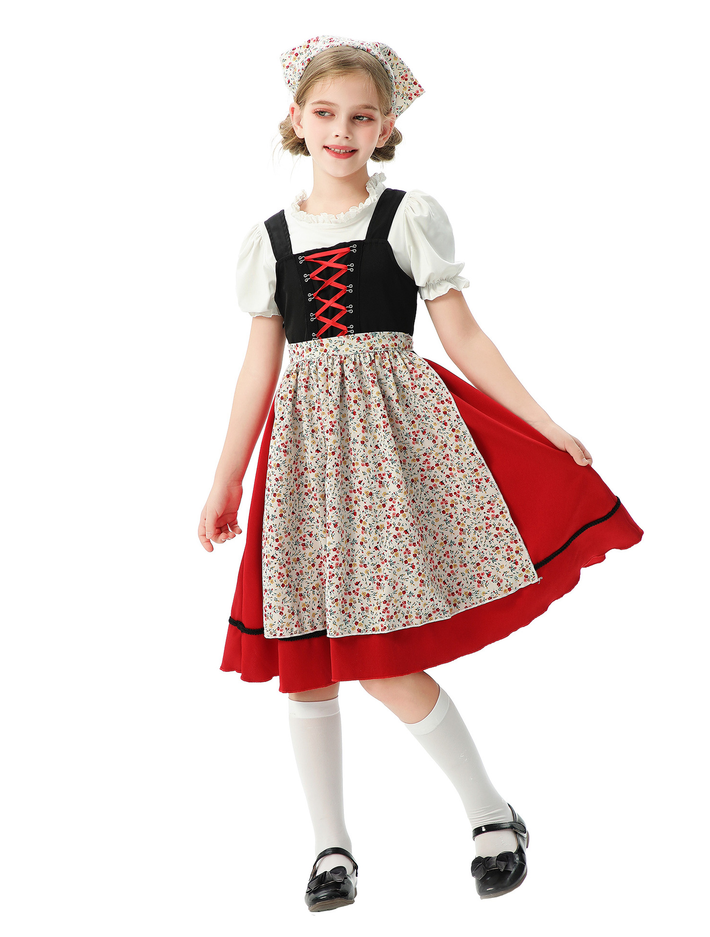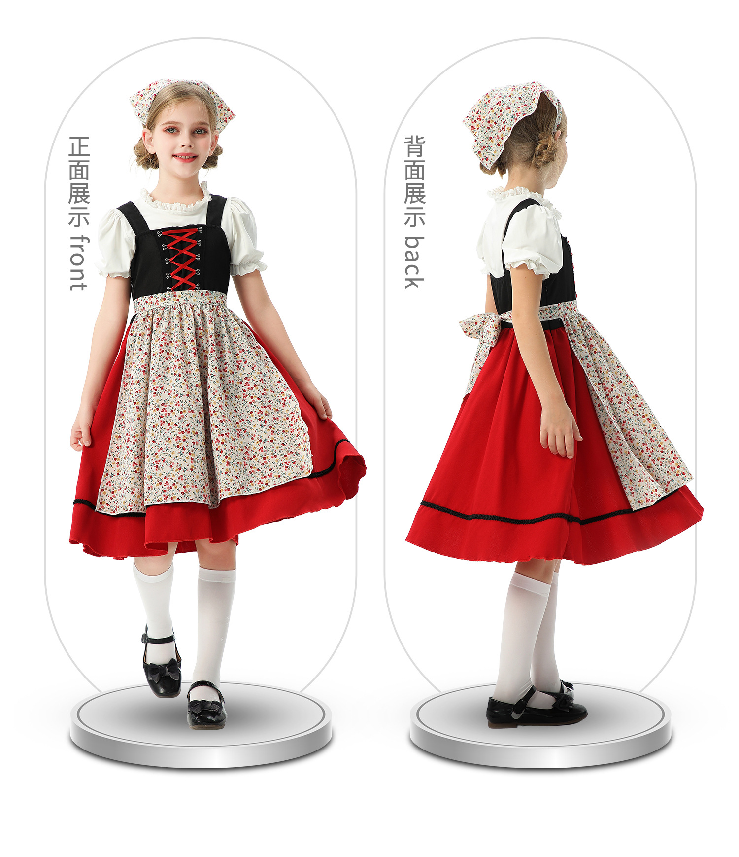바이에른 어린이 의상 유럽 목가적 스타일 소녀 농장 매너 독일 옥토버페스트 메이드 의상