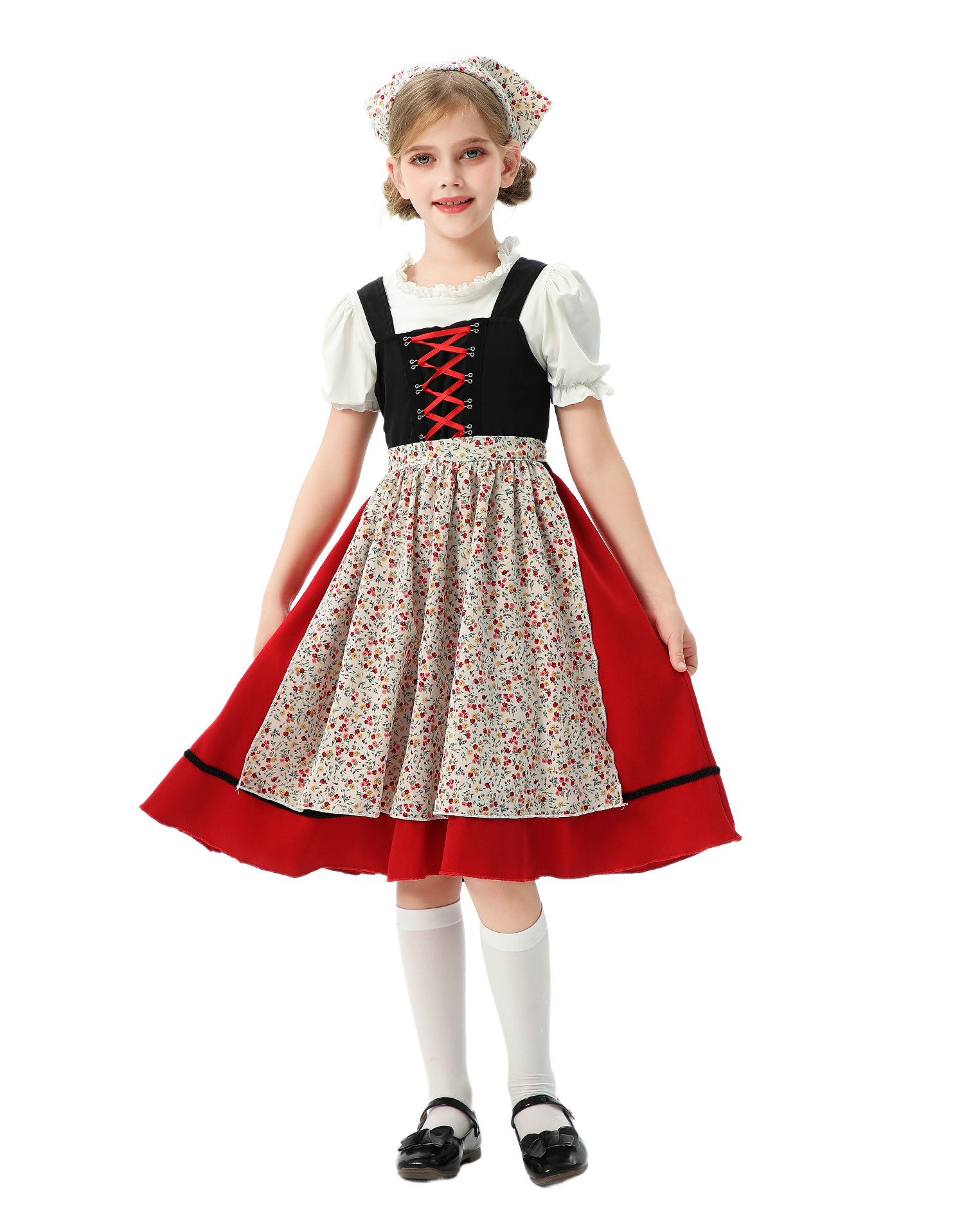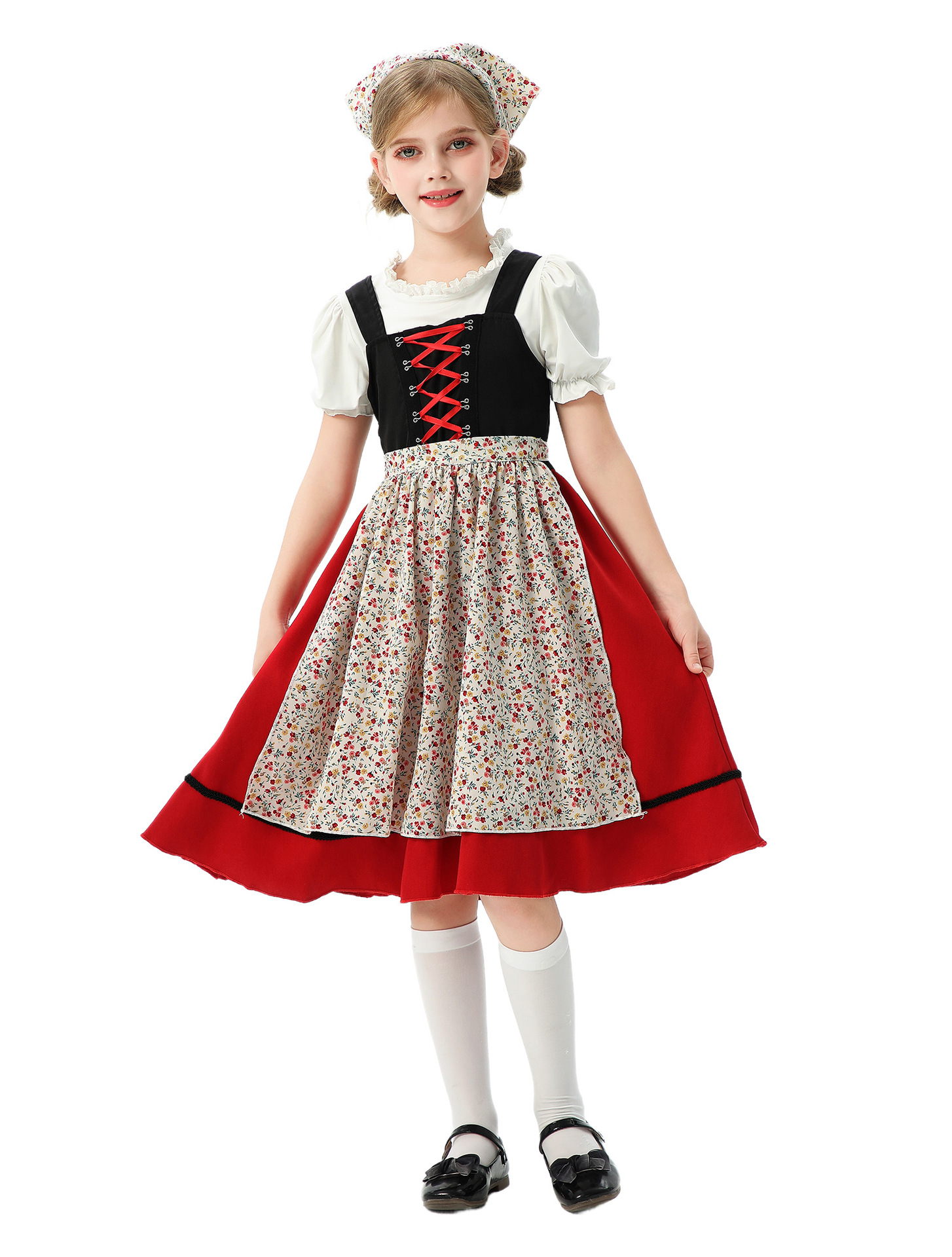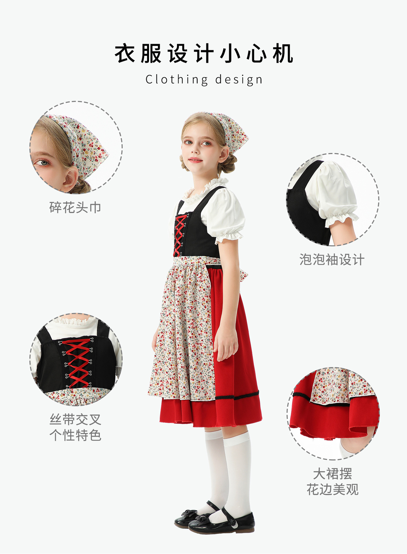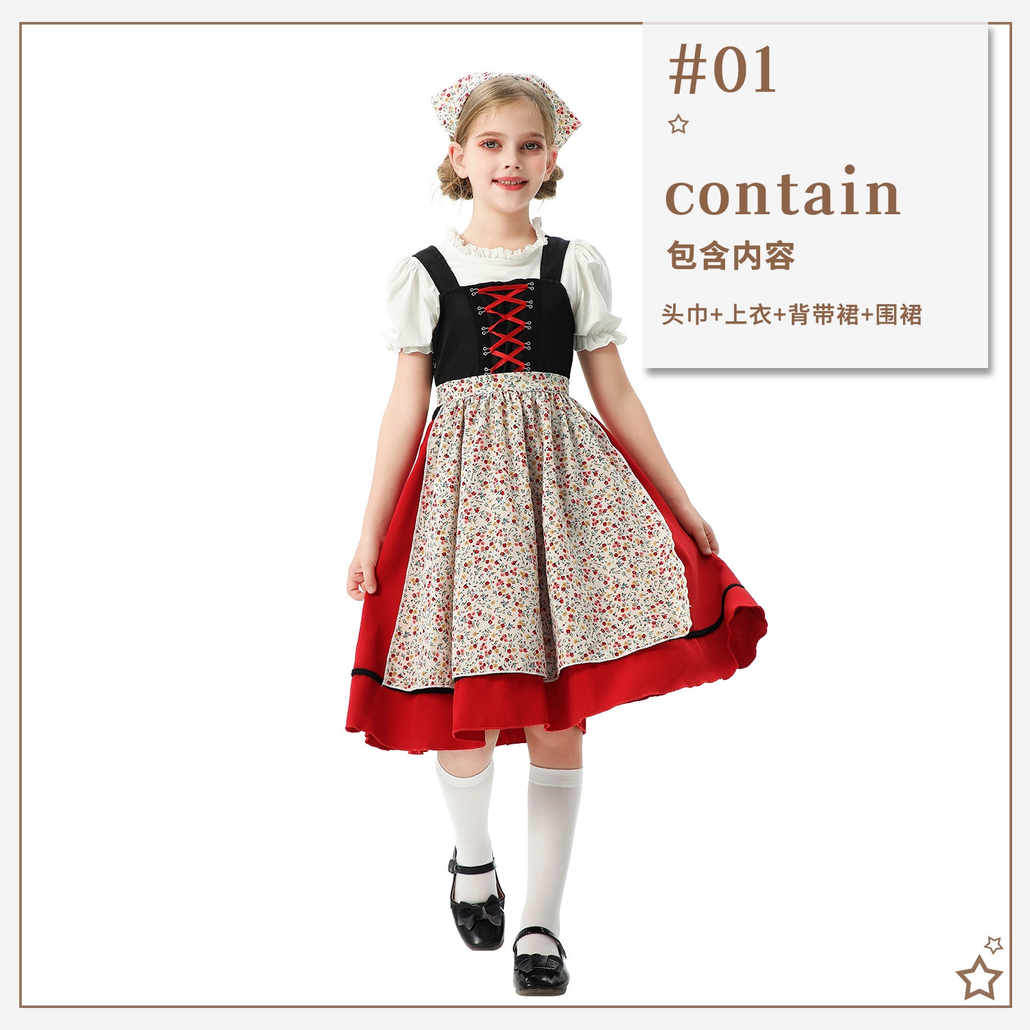 바이에른 어린이 의상 유럽 목가적 스타일 소녀 농장 매너 독일 옥토버페스트 메이드 의상