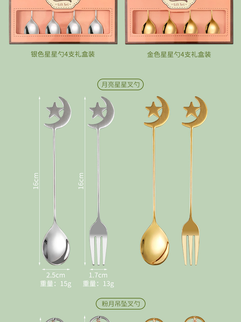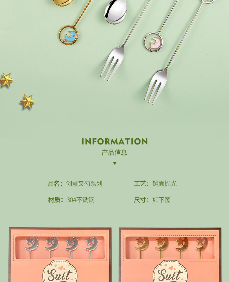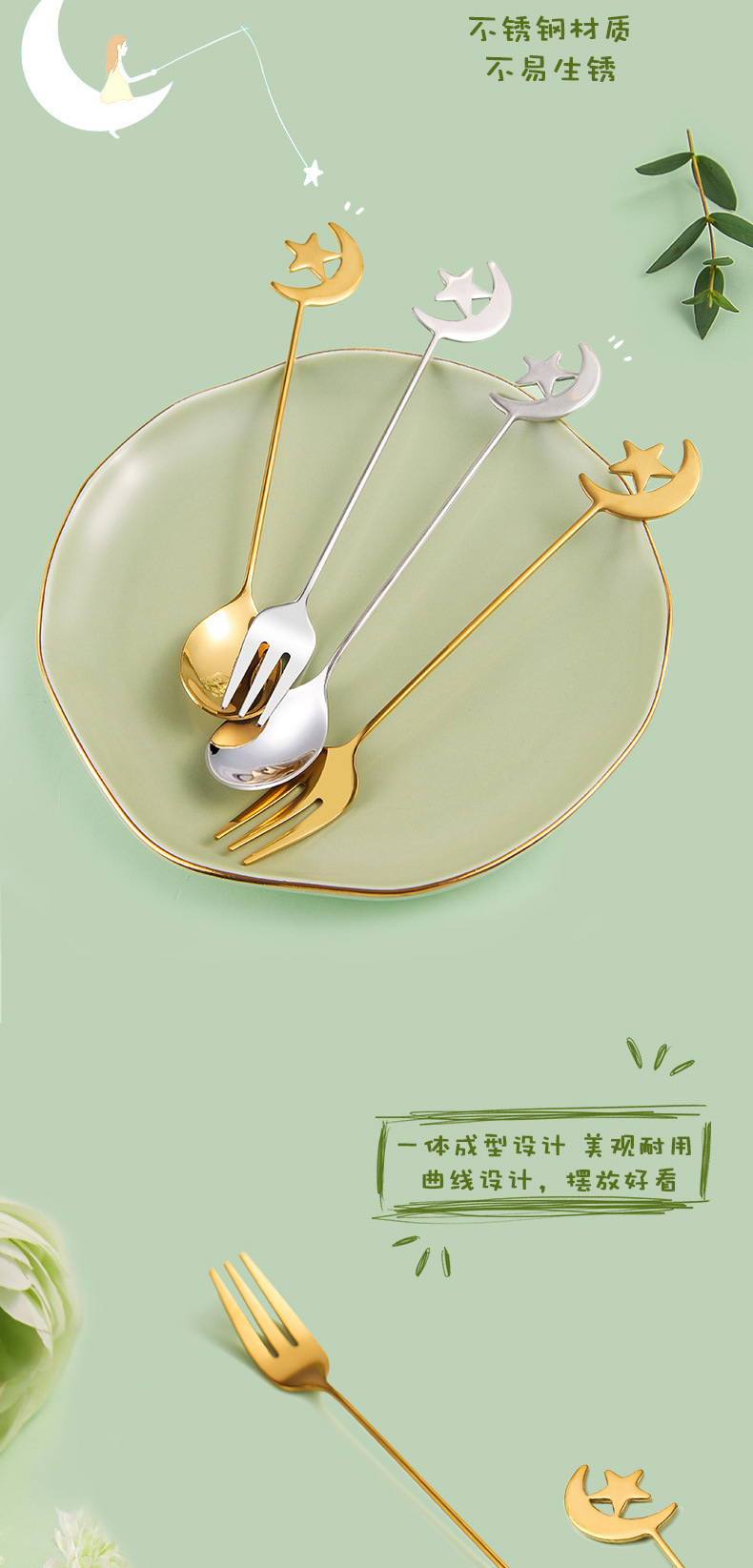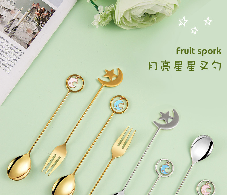 스테인레스 스틸 스푼 귀여운 스타 스푼 포크 식기 창조적 인 커피 혼합 숟가락 어린이 디저트 스푼 과일 포크 도매스토어 가기