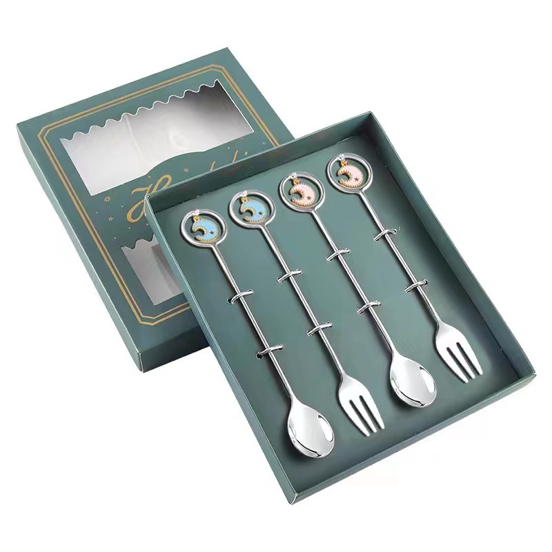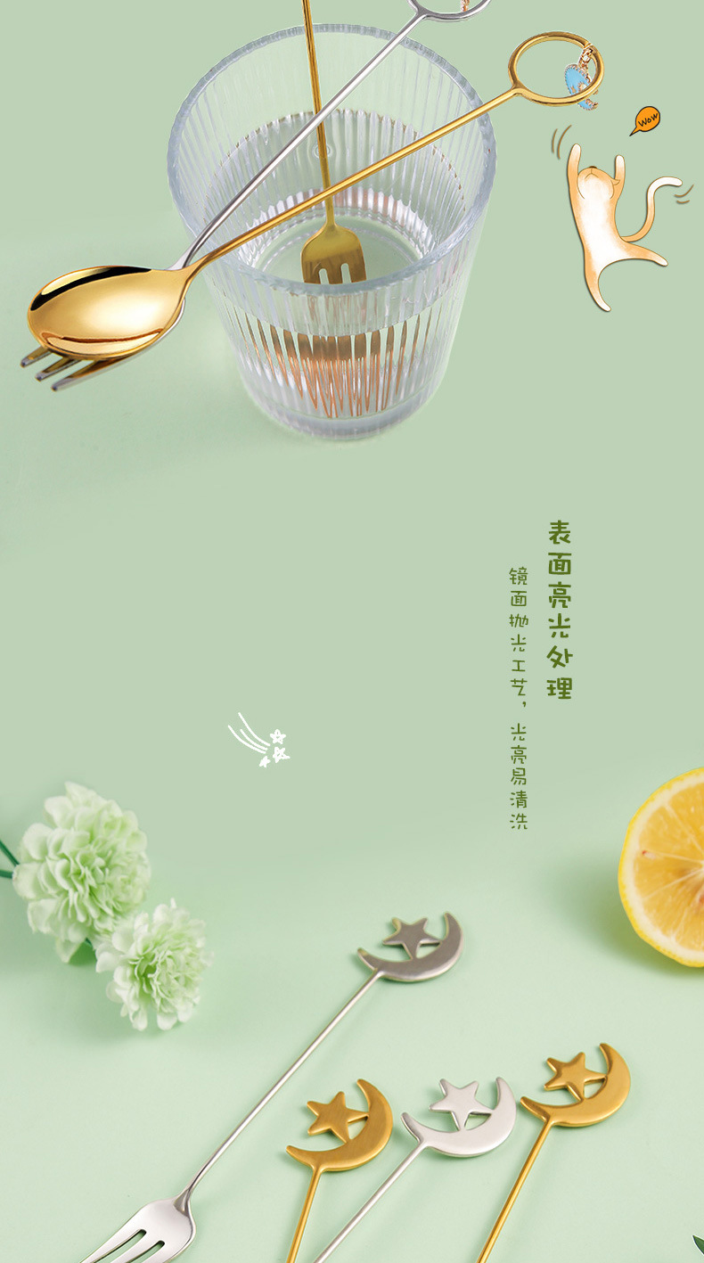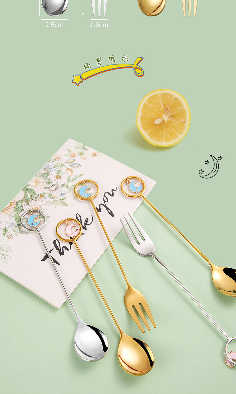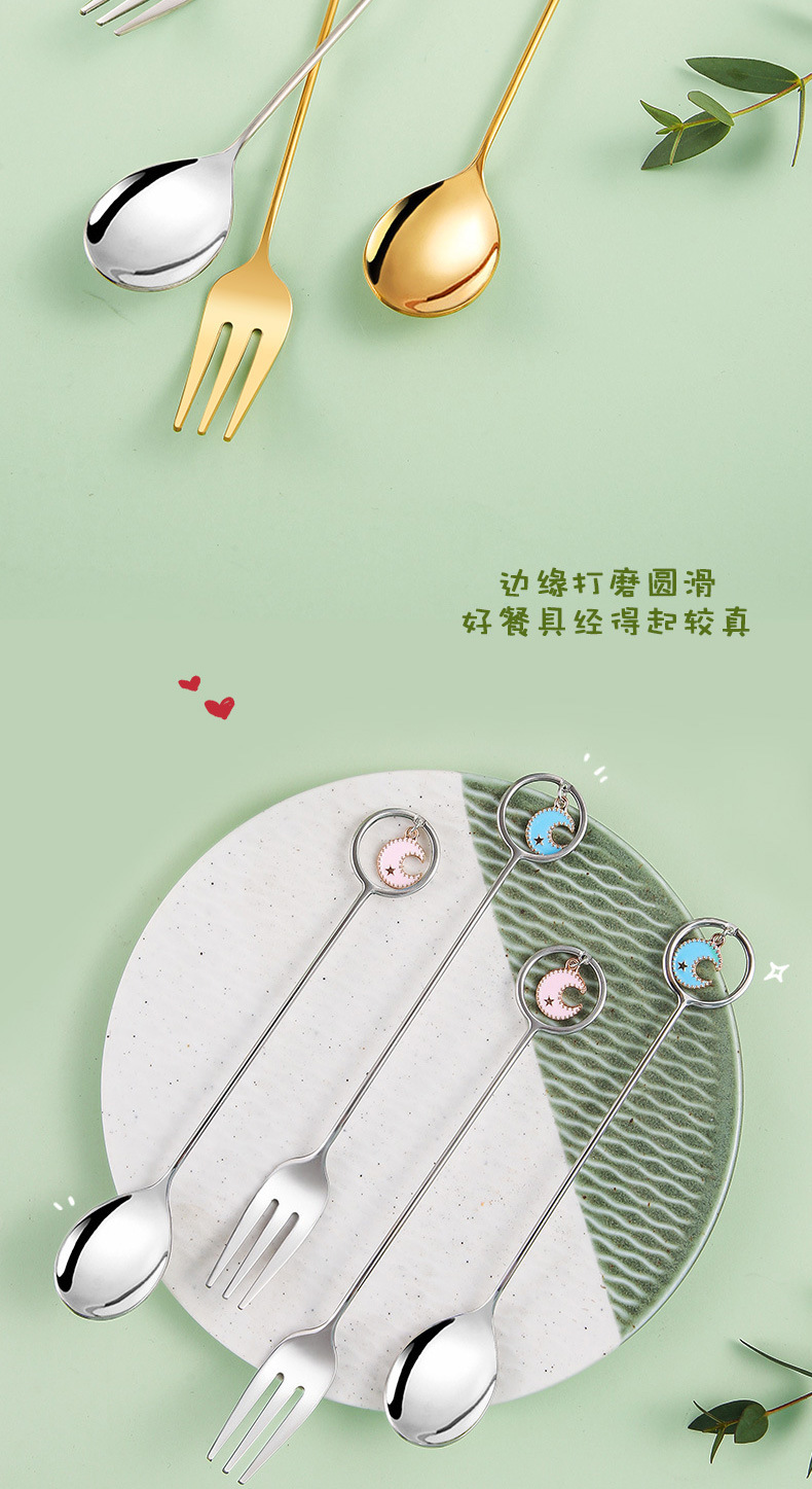 스테인레스 스틸 스푼 귀여운 스타 스푼 포크 식기 창조적 인 커피 혼합 숟가락 어린이 디저트 스푼 과일 포크 도매