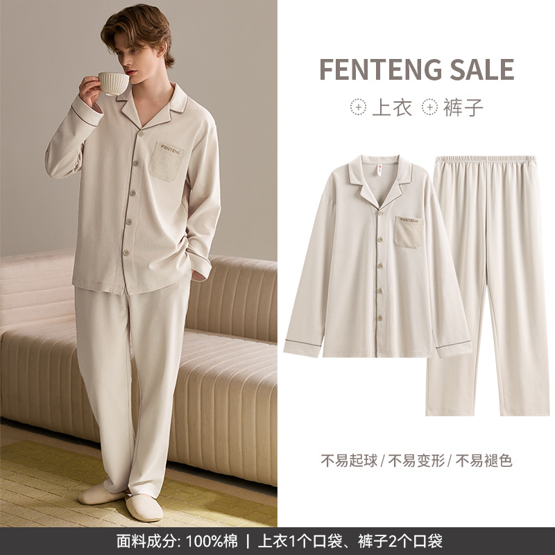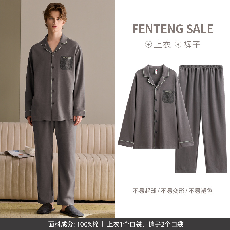 [슬리핑 코튼] 남성용 잠옷 봄, 가을 신상 순면 긴팔 젊은 남성용 루즈핏 캐주얼 홈웨어 세트스토어 가기