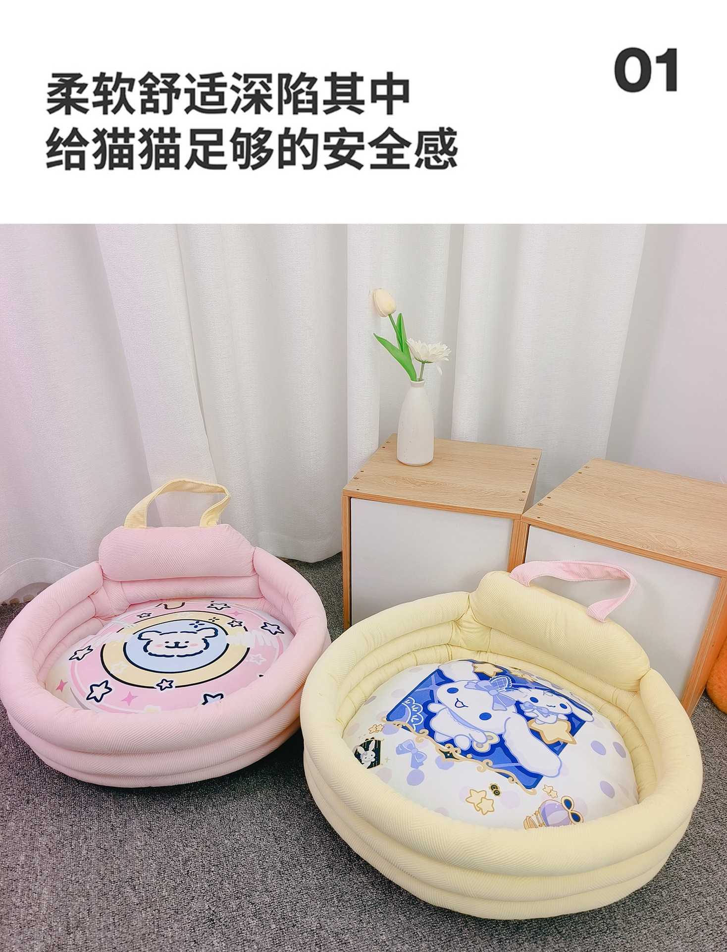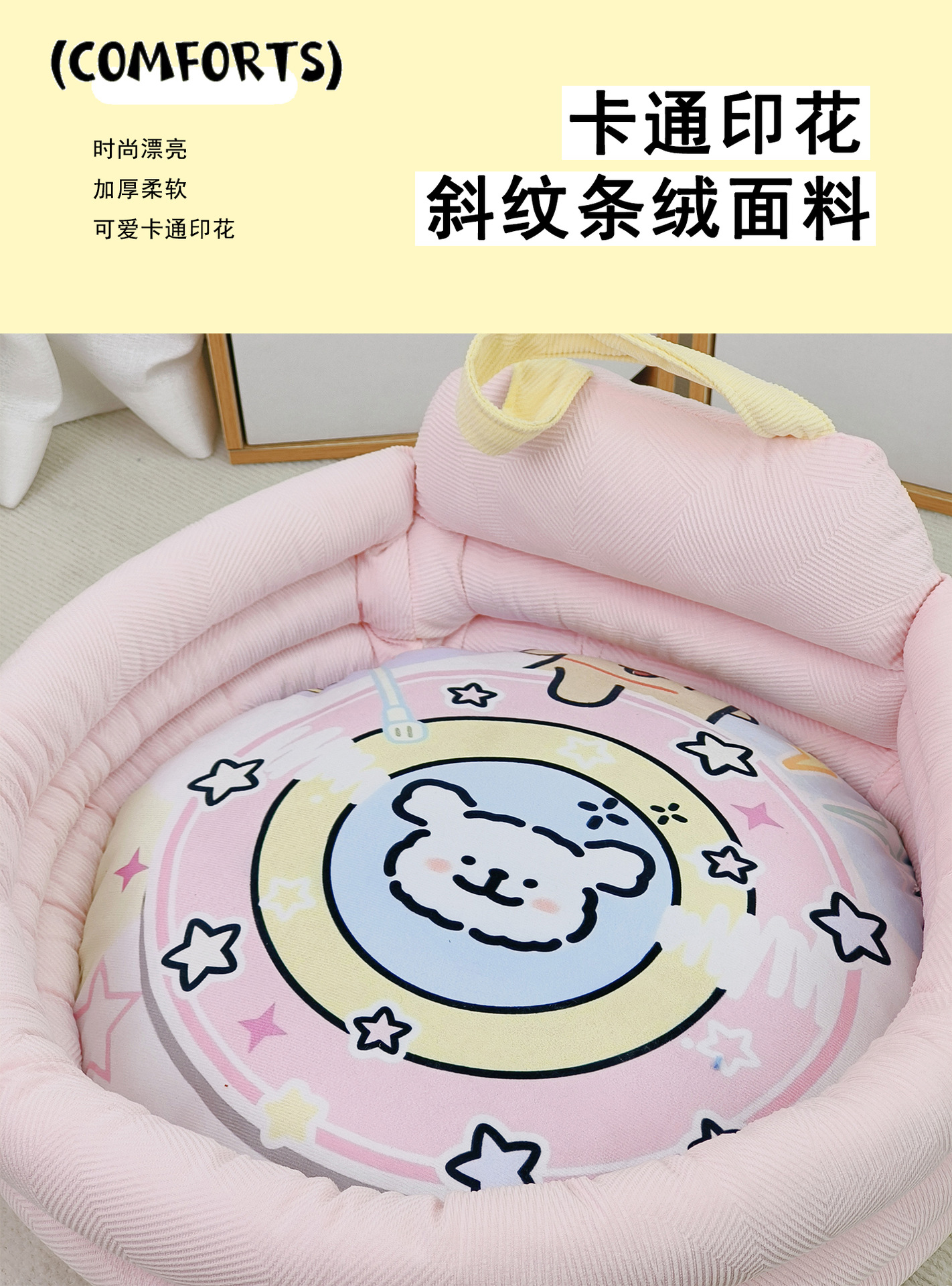 Ins 따뜻한 가을, 겨울 고양이 개집 손잡이 라운드 개집 포메라니안 테디 유니버설 개 개집 만화 면 개집 애완 동물 소파 침대